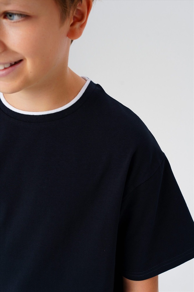 Футболка черная оверсайз для мальчика-школьника Стильная хлопковая футболка свободного кроя — идеальный вариант для школы, спорта и повседневной носки. Ключевые особенности: + Свободный оверсайз крой — модный тренд и комфорт в движении + Натуральный хлопок — приятный к телу, позволяет коже дышать + Классический черный цвет — легко сочетается с любой школьной и спортивной одеждой + Укороченный рукав — удобно для активного образа жизни Преимущества модели: Подходит в школу, на физкультуру на тренировки и для прогулок. Легко стирается и долго сохраняет форму. Не стесняет движений даже при высокой активности.
