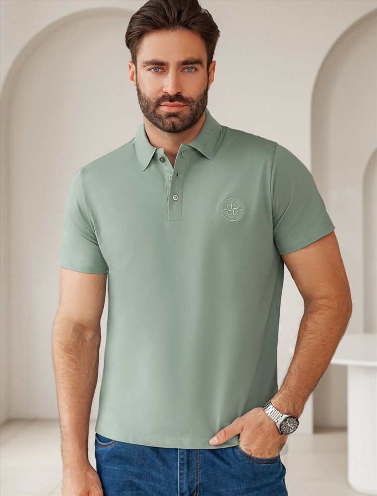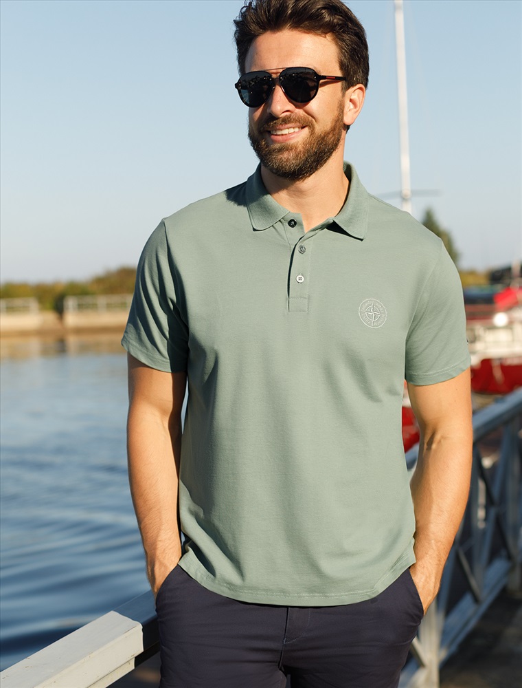 Параметры модели на первом фото: Рост 190, бюст 108, талия 87, бедра 104 Размер товара на первом фото: 54 Футболка-поло выполнена из фактурного трикотажа. Модель с прямого кроя с небольшими разрезами по бокам дополнена вязаным воротником вышивкой с компасом. Премиальный хлопковый трикотаж гарантирует комфорт и износостойкость. На рукаве брендированная металлическая нашивка. Комментарии к товару