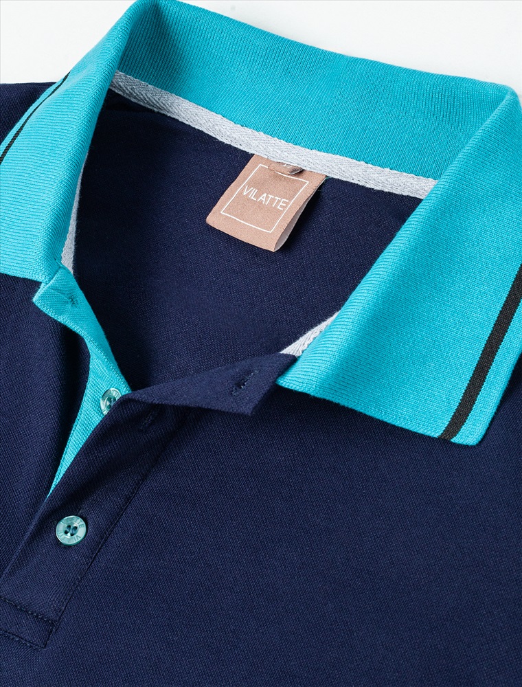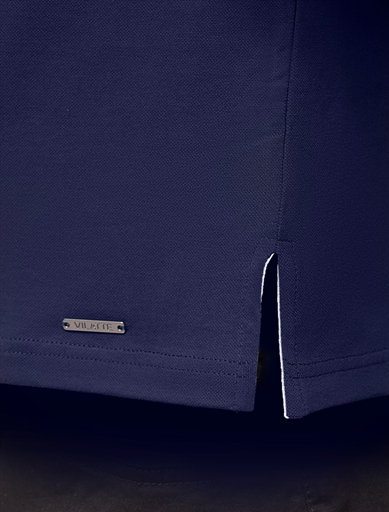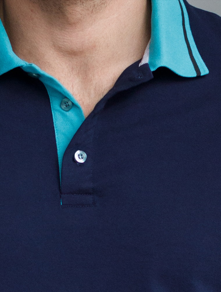 Темно-синее прямое поло выполнено из премиального хлопка пике с характерной фактурой, которая обеспечивает эффективную циркуляцию воздуха. Деликатный акцент в модели выполнен в виде контрастного отложного воротника. Наличие эластана в составе изделия способствует эластичности и меньшей сминаемости. Внизу металлический логотип бренда.