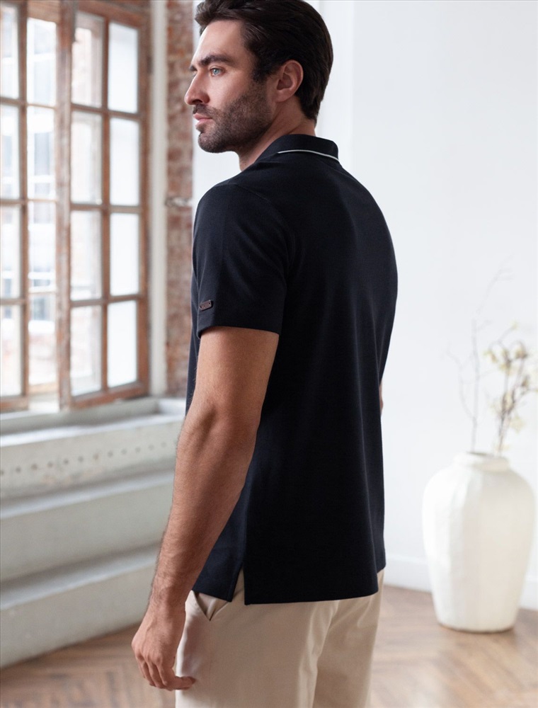 Плотность: 170 Г/м2 Стильная футболка поло темно-синего цвета с отложным воротником на пуговицах выполнена из премиального хлопка с добавлением элатана. Мягкая и дышащая ткань плотностью 200 Г/м2 обеспечивает комфорт в течение всего дня, позволяя коже дышать и поддерживать оптимальную воздухопроницаемость. Классический крой поло подойдет на разные комплекции фигуры, в том числе большие размеры, включая 58. Материал тянется, обеспечивает долговечность и сохраняет презентабельный внешний вид даже после многократных стирок. Контрастные линии на плетеном воротнике добавляют образу стиль old money, а аккуратная нашивка на груди в виде логотипа бренда подчеркивает статусность футболки поло. По бокам аккуратные разрезы для свободы движений и дополнительного удобства. Повседневная футболка подходит для любых ситуаций — от деловых встреч до повседневных прогулок. Такая вещь станет универсальным решением для тех, кто ценит удобство и элегантность в одежде. Лаконичный дизайн футболки с коротким рукавом легко сочетается с различными низами, что позволяет создавать разные образы. Комментарии к товару