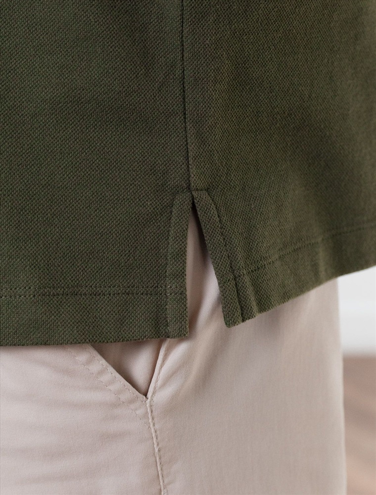 Плотность: 170 Г/м2 Стильная футболка поло темно-оливкового цвета с отложным воротником на пуговицах выполнена из премиального хлопка с добавлением элатана. Мягкая и дышащая ткань плотностью 200 Г/м2 обеспечивает комфорт в течение всего дня, позволяя коже дышать и поддерживать оптимальную воздухопроницаемость. Классический крой поло подойдет на разные комплекции фигуры, в том числе большие размеры, включая 58. Материал тянется, обеспечивает долговечность и сохраняет презентабельный внешний вид даже после многократных стирок. Контрастные линии на плетеном воротнике добавляют образу стиль old money, а аккуратная нашивка на груди в виде логотипа бренда подчеркивает статусность футболки поло. По бокам аккуратные разрезы для свободы движений и дополнительного удобства. Повседневная футболка подходит для любых ситуаций — от деловых встреч до повседневных прогулок. Такая вещь станет универсальным решением для тех, кто ценит удобство и элегантность в одежде. Лаконичный дизайн футболки с коротким рукавом легко сочетается с различными низами, что позволяет создавать разные образы. Комментарии к товару