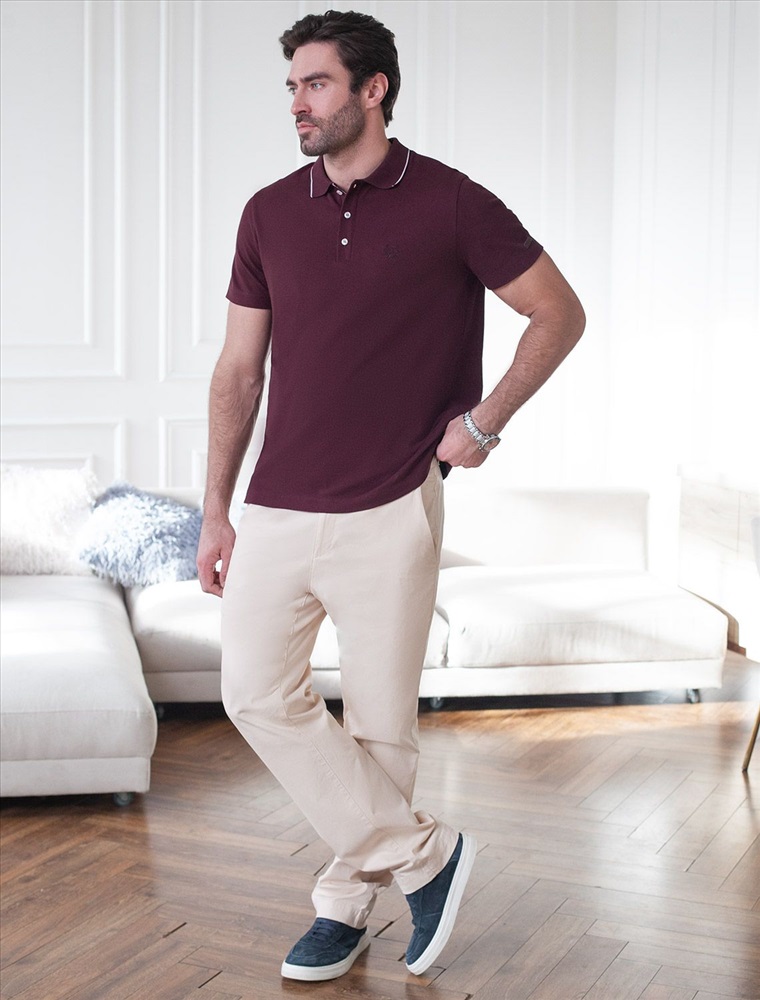 Стильная футболка поло цвета бургунди с отложным воротником на пуговицах выполнена из премиального хлопка с добавлением элатана. Мягкая и дышащая ткань плотностью 200 Г/м2 обеспечивает комфорт в течение всего дня, позволяя коже дышать и поддерживать оптимальную воздухопроницаемость. Классический крой поло подойдет на разные комплекции фигуры, в том числе большие размеры, включая 58. Материал тянется, обеспечивает долговечность и сохраняет презентабельный внешний вид даже после многократных стирок. Контрастные линии на плетеном воротнике добавляют образу стиль old money, а аккуратная нашивка на груди в виде логотипа бренда подчеркивает статусность футболки поло. По бокам аккуратные разрезы для свободы движений и дополнительного удобства. Повседневная футболка подходит для любых ситуаций — от деловых встреч до повседневных прогулок. Такая вещь станет универсальным решением для тех, кто ценит удобство и элегантность в одежде. Лаконичный дизайн футболки с коротким рукавом легко сочетается с различными низами, что позволяет создавать разные образы.