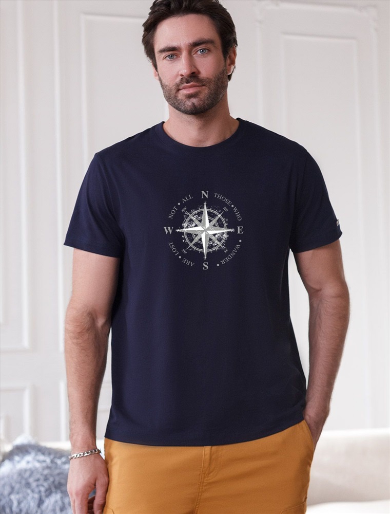 Футболка темного-цвета из премиального хлопка с эластаном плотностью 170 Г/м2 станет универсальным решением для любого случая. Прямой крой обеспечивает комфортную посадку на любую фигуру, включая большие размеры, подходит как на низкий, так и на высокий рост. Благодаря сочетанию натурального хлопка и эластана, ткань отлично дышит и слегка тянется, сохраняя форму после стирок. Однотонная футболка выполнена в минималистичном стиле, дополнена принтом в виде изображения компаса и надписи. Перевод надписи: Not all those who wander are lost - Не все те, кто странствует, потеряны. На рукаве нашивка из эко-кожи с логотипом VILATTE. Подходит как классический вариант для работы в офис, так и для повседневной носки или занятий спортом. Мягкая ткань приятна к телу, не вызывает дискомфорта и идеально подходит для дома или летних прогулок. Простая и практичная футболка с коротким рукавом станет базовым элементом вашего гардероба. Она легко сочетается в спортивном или классическом стиле.