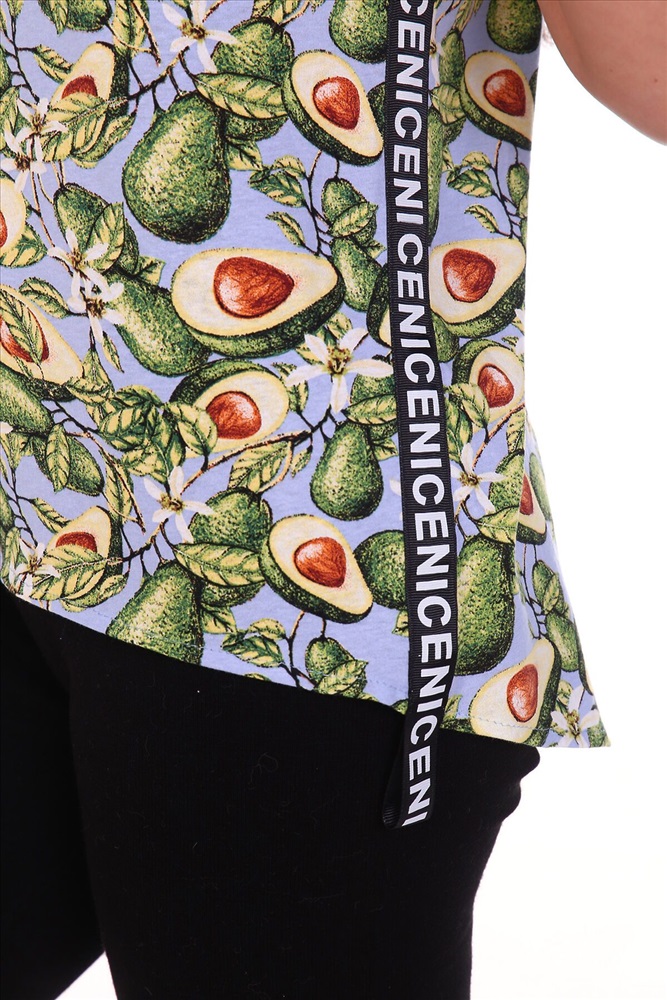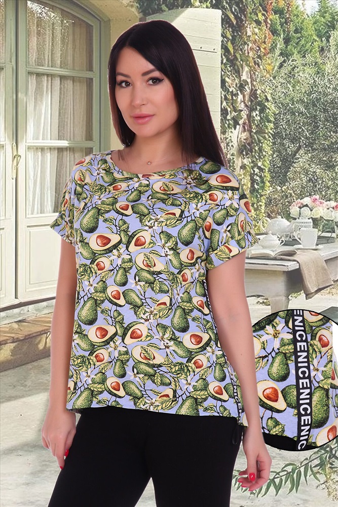 ID товара: 278448 Состав: Хлопок 100% Сезон: Весна/Лето Длина: Средняя Фасон: Прямой Рукав: Короткий Вид застежки: Нет Вырез горловины: Круглый Рисунок: Фантазийный Тип карманов: Без карманов Декоративные элементы: Печатный принт Основная ткань: Хлопок | Кулирка, Кулирка — это самое тонкое и гладкое трикотажное полотно, изготовленное из чистого хлопка. Полотно имеет характерную структуру- с лицевой стороны плоские «косички», с изнаночной – «кирпичная кладка». Особенности- гигроскопична, воздухопроницаема, при стирке, сушке и глажке не садится, хорошо держит форму, не образует складки. Стиль: Повседневный Страна бренда: Россия Страна производства: Россия Футболка со спущенным плечом на манжете изготовлена из 100% хлопчатобумажного трикотажного полотна. Округлый вырез горловины обработан окантовкой в цвет ткани. Полочка немного короче спинки. Футболку дополняют отделочные ленты, настроченные по боковым швам. Изделие удобное и комфортное для повседневной носки. Комментарии к товару