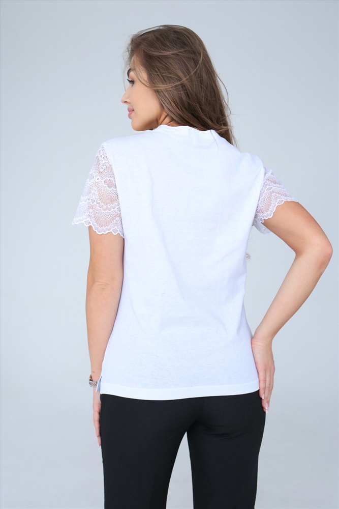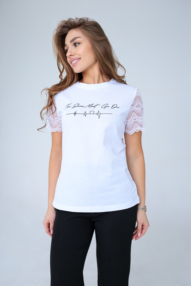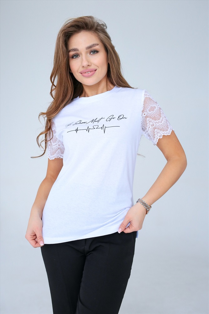 Состав: 95% ПЭ; 5% эластан Модель: Футболка с кружевом 100005 Тип товара: футболка Материал: полиэстер | полиэстер Бренд: Шерри Длина: средняя длина Отделка: с кружевом | с печатью Рисунок: надпись Рукав: короткий рукав Сезонность: лето | осень | весна | зима Силуэт: прямой Стиль: повседневный Просторная женская футболка из хлопка для тех, кто любит ощущать свободу во всём. Заботливо сшитая их нежнейшего эластичного трикотажа с кружевными рукавами, она не стесняет движений, тем самым добавляя нотку расслабленного шика. Лаконичный дизайн футболки с кружевом, подойдет для повседневной носки в качестве одежды для дома, сна, отдыха и на прогулку. Таблица размеров и веса