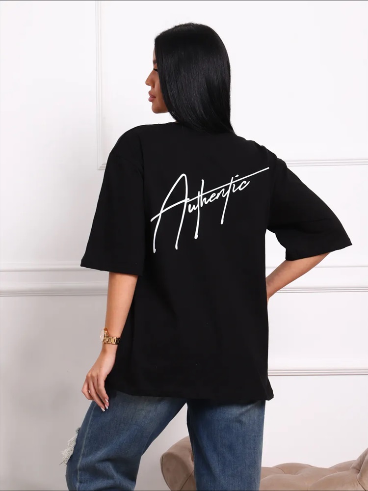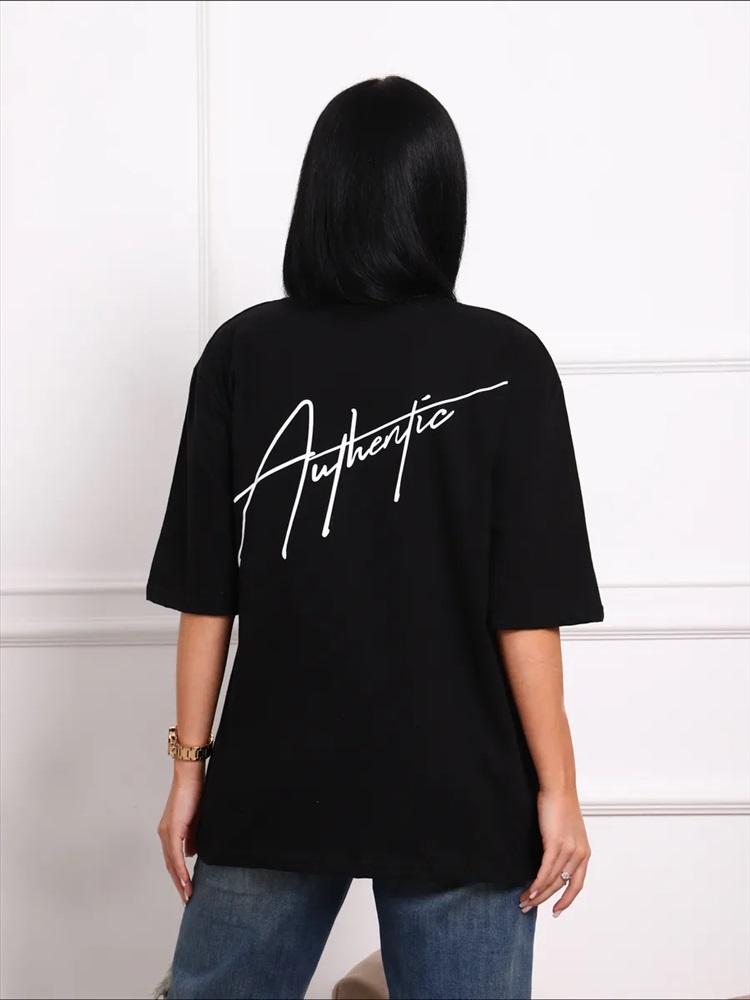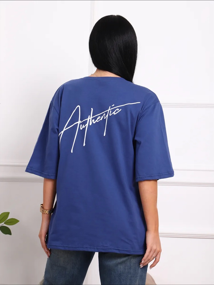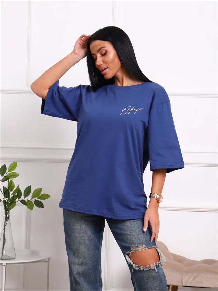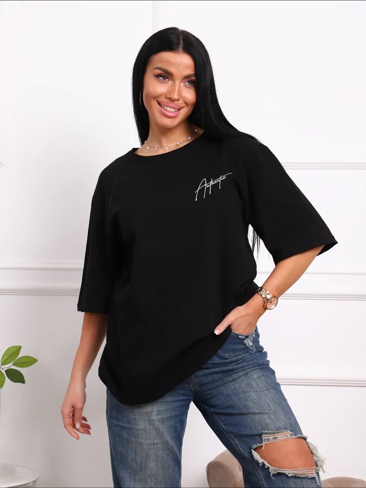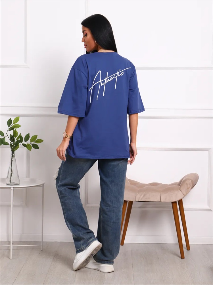 Состав: Хлопок 100% Модель: Футболка с надписью на груди и на спине, Арт.813 Тип товара: футболка Материал: кулирка | кулирка Бренд: Vesta' Отделка: с печатью Рисунок: надпись Рукав: короткий рукав Сезонность: лето | осень | весна | зима Силуэт: свободный Скидка: любая Стиль: повседневный Стильная и ультракомфортная модель свободного кроя, которая идеально сочетает в себе удобство и модный образ. Отличается расслабленным силуэтом, который не сковывает движения, подходит для повседневной носки и легко комбинируется с джинсами, юбками и спортивными брюками. Изготавливается из мягких, дышащих материалов, обеспечивая комфорт даже в теплую погоду. Таблица размеров и веса