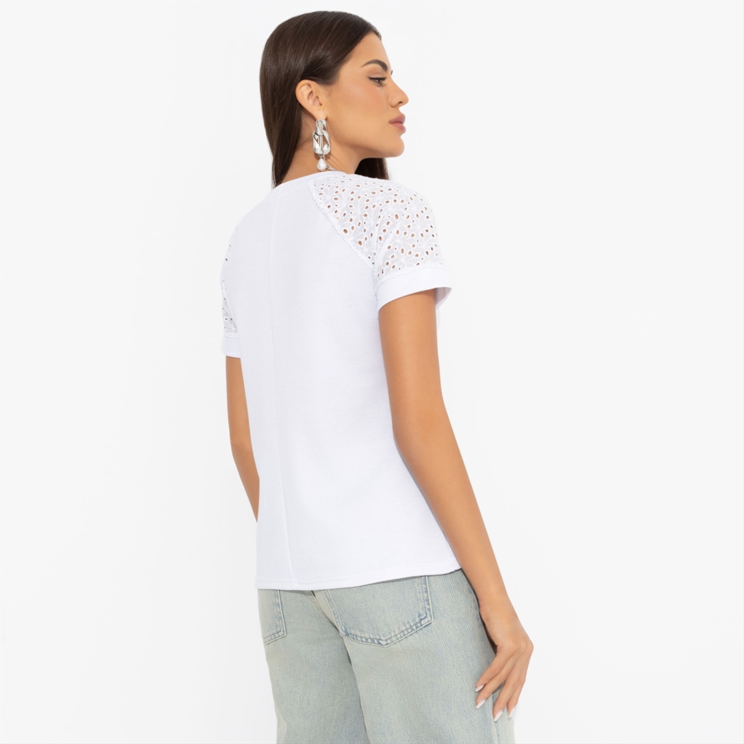 Состав: Трикотаж «милано», «шитьё хлопок» (65% п/э, 30% вискоза, 5% стрейч) Плотность ткани: Средняя Тип ткани: Текстиль Вид застежки: Нет Карманы: Нет Основной цвет ткани: Белый Отрезная талия: Нет Подклад: Нет Резинка по талии: Нет Рисунок/раппорт: Каждое изделие уникально из-за расположения рисунка на ткани Сезон: Круглогодичный Силуэт: Приталенный Стиль: Повседневный Параметры модели на фото: