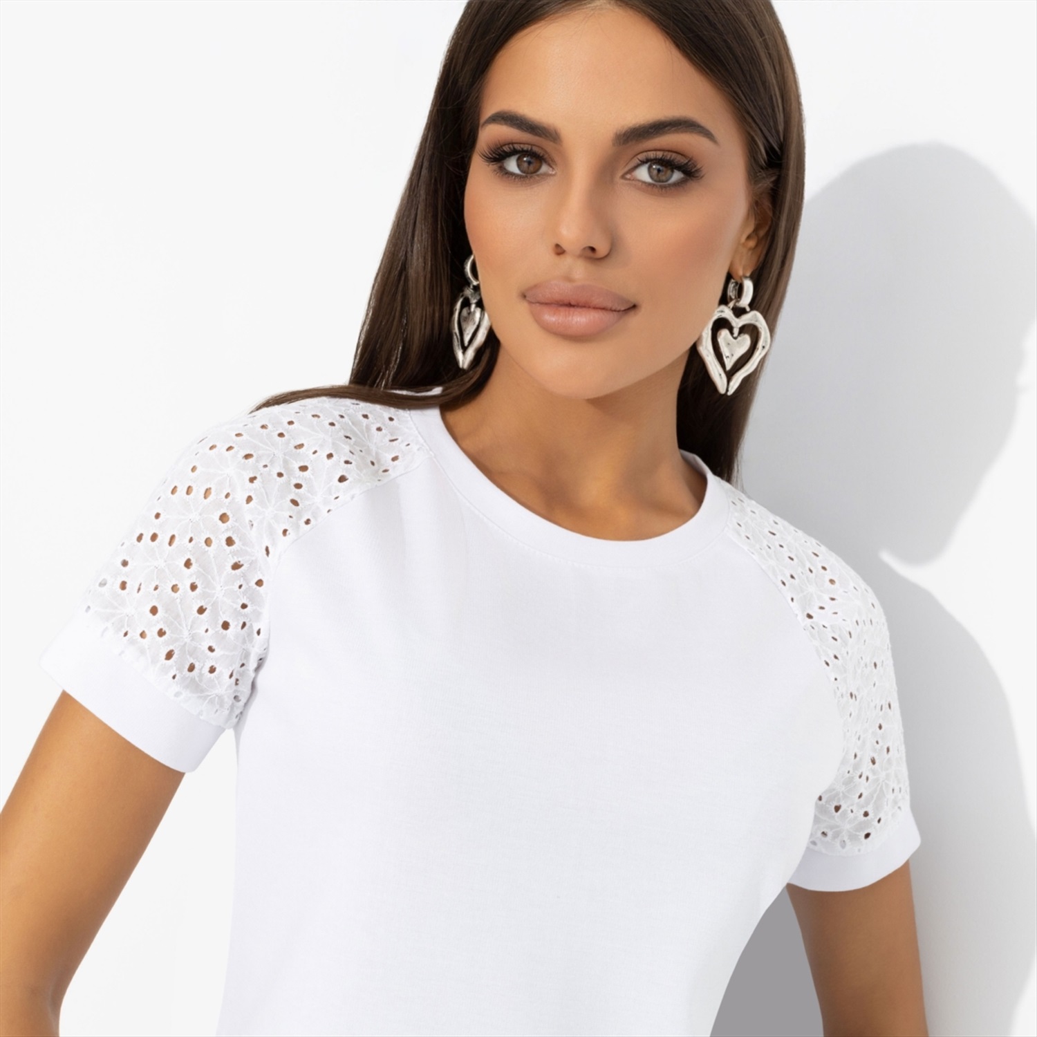 Состав: Трикотаж «милано», «шитьё хлопок» (65% п/э, 30% вискоза, 5% стрейч) Плотность ткани: Средняя Тип ткани: Трикотаж Вид застежки: Нет Дополнительный цвет ткани: Белый Карманы: Нет Основной цвет ткани: Белый Отрезная талия: Нет Подклад: Нет Резинка по талии: Нет Рисунок/раппорт: Каждое изделие уникально из-за расположения рисунка на ткани Сезон: Лето Силуэт: Приталенный Стиль: Повседневный Параметры модели на фото: