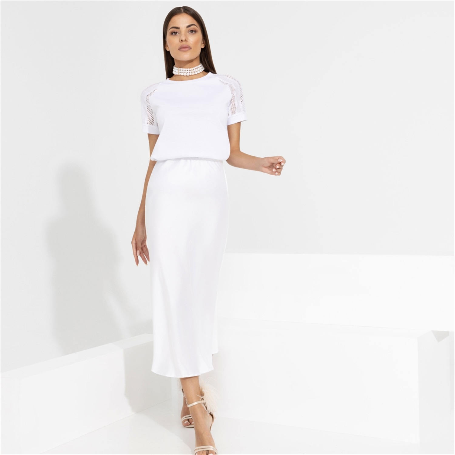 Состав: Трикотаж «милано», «гипюр стрейч» (65% п/э, 30% вискоза, 5% спандекс) Плотность ткани: Средняя Тип ткани: Трикотаж Вид застежки: Нет Карманы: Нет Основной цвет ткани: Белый Отрезная талия: Нет Подклад: Нет Резинка по талии: Нет Рисунок/раппорт: Каждое изделие уникально из-за расположения рисунка на ткани Сезон: Круглогодичный Погрузитесь в мир роскоши с нашей футболкой «Талант перемен (идеал)». Созданная для тех, кто ценит качество и стиль, эта футболка из трикотажа «милано» и «гипюра стрейч» олицетворяет изысканность и элегантность. Белоснежный оттенок подчеркнет вашу неповторимую красоту, а прозрачные кокетливые рукава добавят шарма вашему образу. Позвольте себе ощутить непревзойденный комфорт и безупречный стиль с футболкой, которая станет неотъемлемым элементом вашего гардероба. Насладитесь невероятным комфортом благодаря смеси тканей, из которых изготовлена эта футболка. Сочетание полиэстера, вискозы и спандекса обеспечивает идеальную посадку, приятное ощущение на коже и устойчивость к многократным стиркам. Вы будете чувствовать себя уверенно и комфортно в любой ситуации, ведь наша футболка сочетает в себе высокое качество и стиль. Не упустите возможность выделиться из толпы и стать настоящей звездой моды с футболкой «Талант перемен (идеал)». Этот предмет гардероба не только подчеркнет ваш индивидуальный стиль, но и поможет создать запоминающийся образ. Будьте смелыми, будьте прекрасными, не ограничивайте себя — выбирайте только лучшее! Комментарии к товару