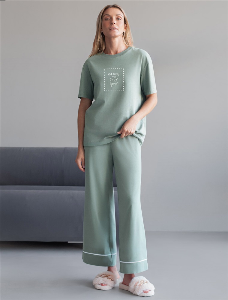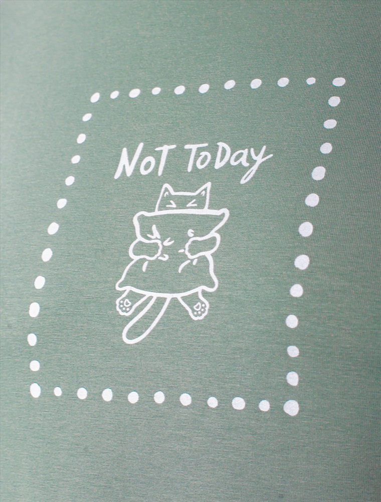 Особое внимание привлекает стильный принт в виде милого котика с минималистичной надписью. Перевод надписи Not today - Не сегодня. Принт выполнен красками с устойчивым покрытием, который добавляет изделию оригинальности и позволяет выразить индивидуальность.