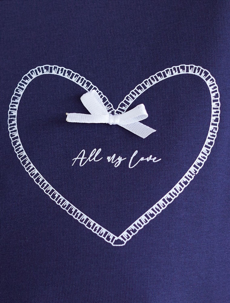 Особое внимание привлекает стильный принт в виде сердца с минималистичной надписью, перевод надписи: All my love - вся моя любовь. Принт выполнен красками с устойчивым покрытием, который добавляет изделию оригинальности и позволяет выразить индивидуальность.
