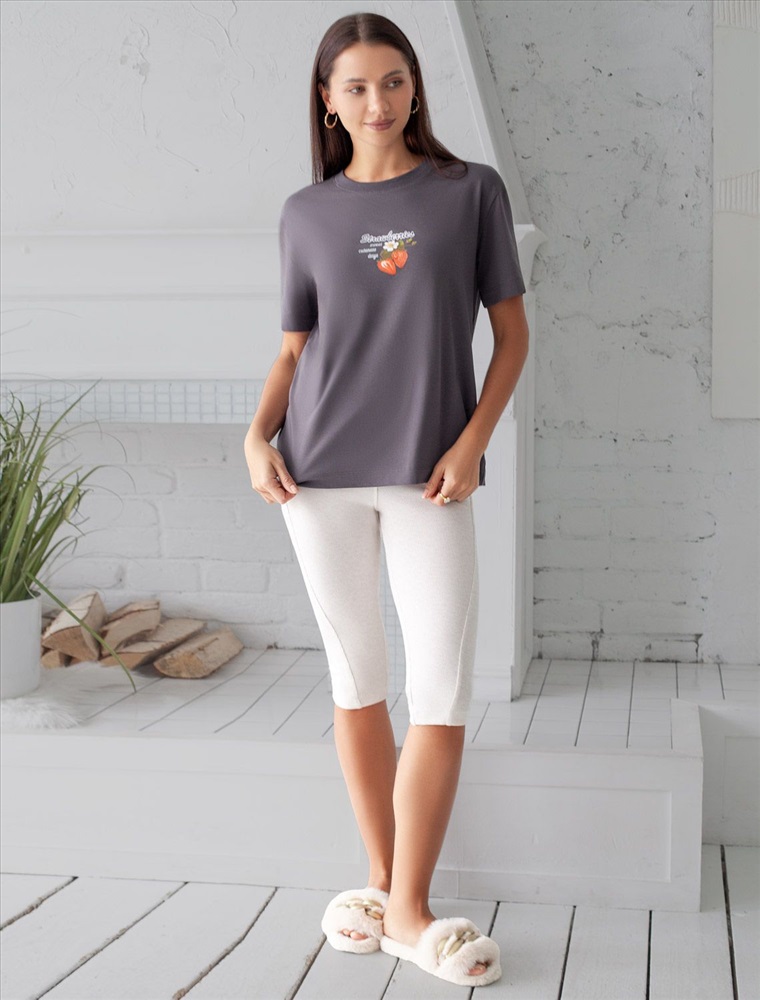 Футболка темно-серого цвета изготовлена из премиального хлопка с эластаном, она обеспечивает невероятное ощущение уюта и легкости. Натуральный материал сохраняет форму и цвет после множества стирок, обеспечивая долговечность изделия, а его высокая воздухопроницаемость создает ощущение свежести даже в течение долгого дня.