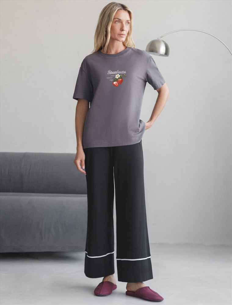 Особое внимание привлекает стильный принт в виде клубники с минималистичной надписью. Перевод надписи: Strawberries sweet summer days - Клубничные сладкие летние дни. Принт выполненны красками с устойчивым покрытием, который добавляет изделию оригинальности и позволяет выразить индивидуальность.