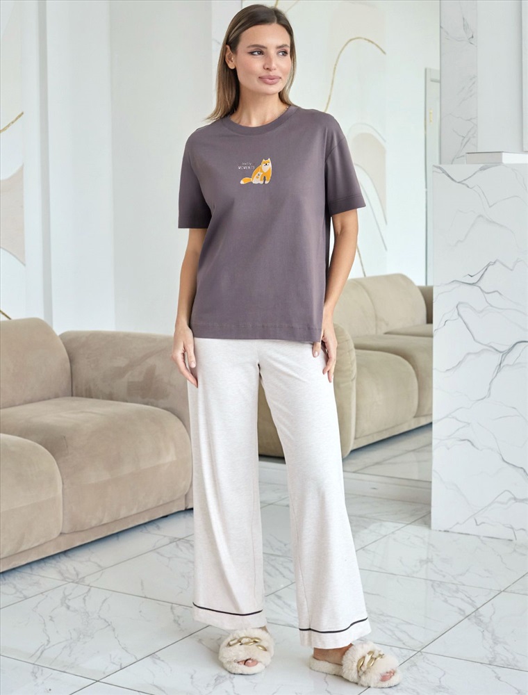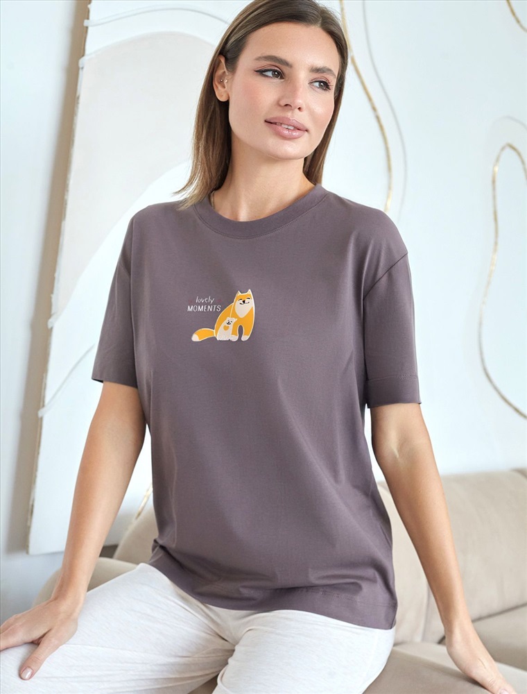 Футболка кофейного цвета выполнена из премиального 100% хлопка плотностью 140 Г/м2. Главная особенность этого изделия — тонкое кулирное полотно, которое легче и воздушнее стандартного варианта. Благодаря своей деликатной текстуре футболка идеально подходит для домашних образов и пижамных комплектов. Ткань отлично дышит, обеспечивая максимальный уют во время сна и отдыха. Особое внимание привлекает стильный принт контрастного цвета в виде котиков с надписью. Перевод надписи: Love moments - Моменты любви. Принт выполнен красками с устойчивым покрытием, который добавляет изделию оригинальности и позволяет выразить индивидуальность. Свободный крой футболки дарит удобство и не стесняет движений, что делает ее идеальной для повседневной носки или активного отдыха, подчеркивает современный взгляд на моду. Подойдет девушкам и женщинам на любую фигуру, вы будете чувствовать себя в ней уверенно и комфортно. Лаконичный современный принт делает изделие универсальным: можно создавать стильные образы для прогулок, встреч, занятий спортом и домашних дел. Базовая футболка подходит для любой ситуации и сочетается с разными элементами гардероба.