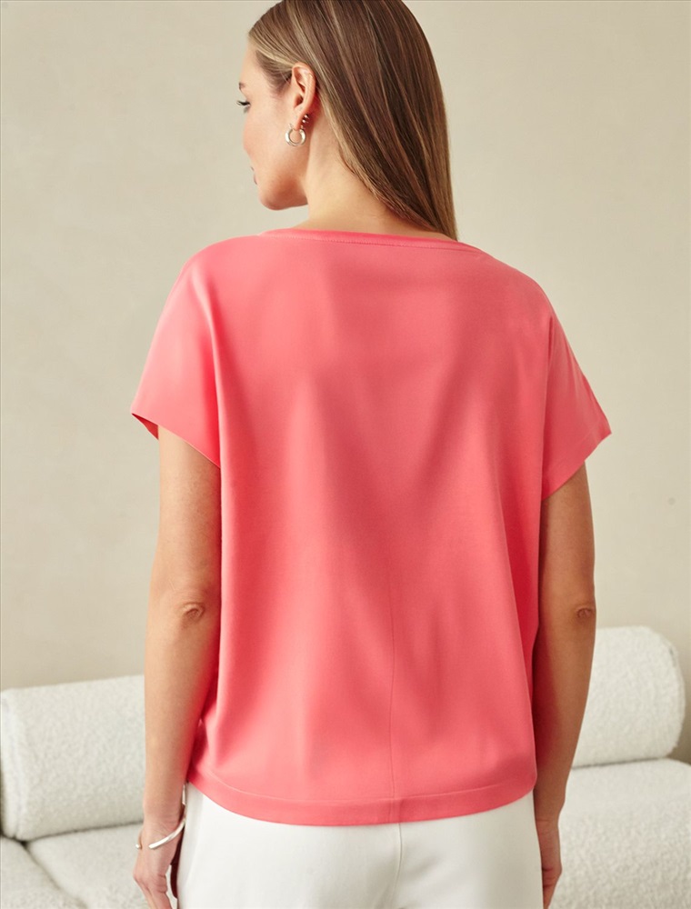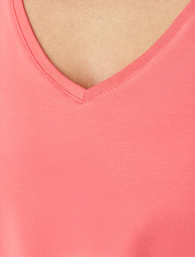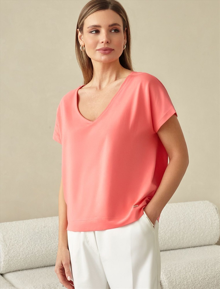 Свободная футболка с V-вырезом розово-кораллового цвета выполнена из качественной кулирной глади плотностью 150 г/м² - это оптимальная толщина, ткань достаточно плотная, чтобы не просвечивать, но при этом легкая и мягкая. Натуральный хлопок позволяет телу дышать, а небольшое содержание эластана гарантирует, что футболка сохранит свой первоначальный вид даже после множества стирок. Эта футболка идеальна для абсолютной свободы и расслабленного стиля. Её оверсайз-силуэт в сочетании с мягкими линиями создает современный, летящий образ, который вписывается в концепцию комфортного городского гардероба. V-образный вырез визуально удлиняет шею и акцентирует зону декольте, добавляя образу женственности и легкости. Благодаря такому вырезу свободный крой футболки выглядит более изящным. Отсутствие плечевого шва создает мягкую, покатую линию плеча. Такой крой не ограничивает движения и идеально садится на любую фигуру, в том числе большие размеры, скрывает нюансы и подчеркивает хрупкость силуэта. Футболка мягко драпируется, обеспечивая отличную вентиляцию в жаркую погоду и даря ощущение полного комфорта. Повседневная футболка сочетается с базовыми и акцентными элементами одежды, позволяет создавать различные лаконичные или яркие образы.