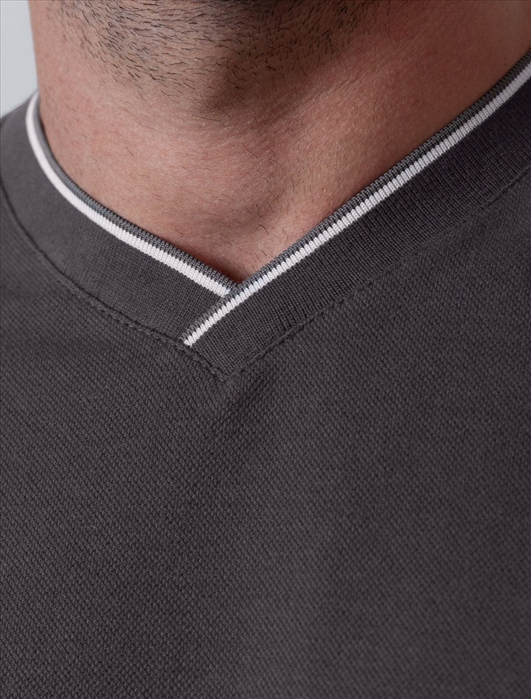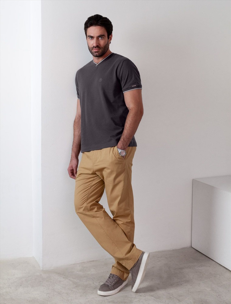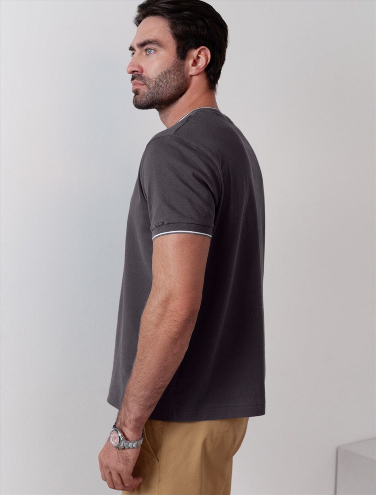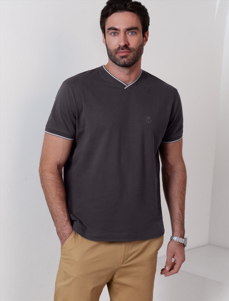 Плотность: 170 Г/м2 Футболка темно-серого цвета с аккуратным V-образным вырезом выполнена из премиального хлопка с эластаном плотностью 200 Г/м2. Высококачественный эластичный хлопок обеспечивает мягкость, воздухопроницаемость и идеальную посадку на любую фигуру и размеры, включая 58 размер. Классический прямой крой футболки подчеркивает фигуру, но не сковывает движений. Элегантный небольшой V-образный вырез с контрастной полосой визуально удлиняет шею, а минималистичная вышивка на груди в виде логотипа бренда добавляет изысканности и индивидуальности, не перегружая образ. Эта базовая футболка - идеальный баланс комфорта и стиля для современного мужчины, легко сочетается с разными низами, создавая образ от кэжуал до более элегантного. Стильная футболка подходит как для повседневной носки, так и для создания более нарядных образов. Комментарии к товару