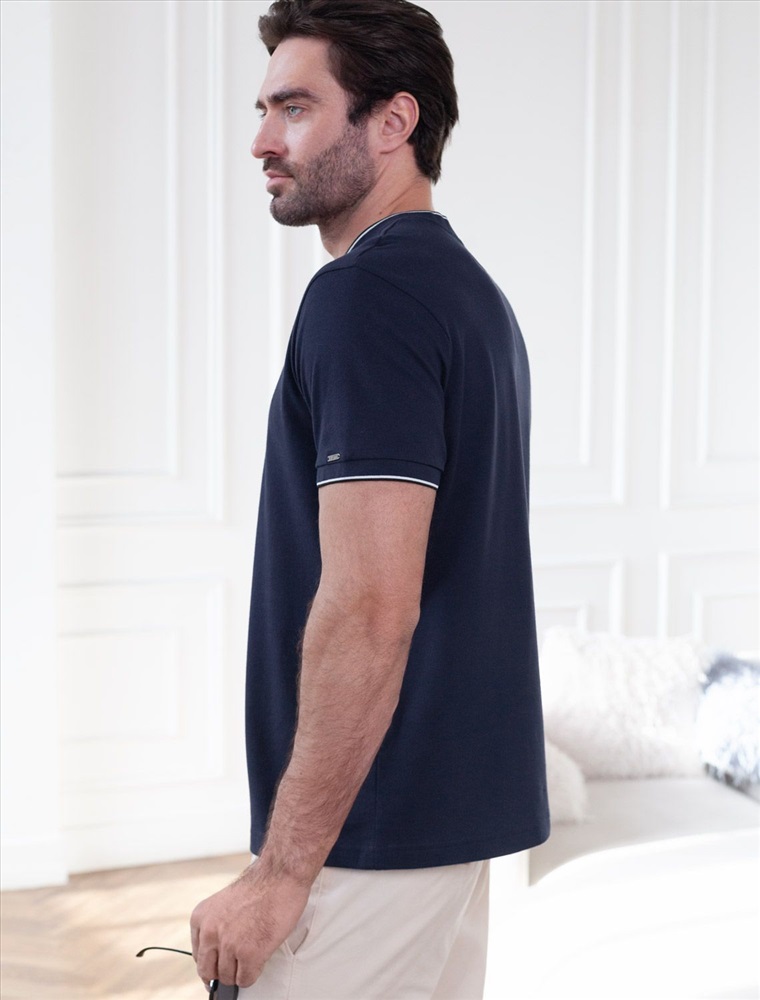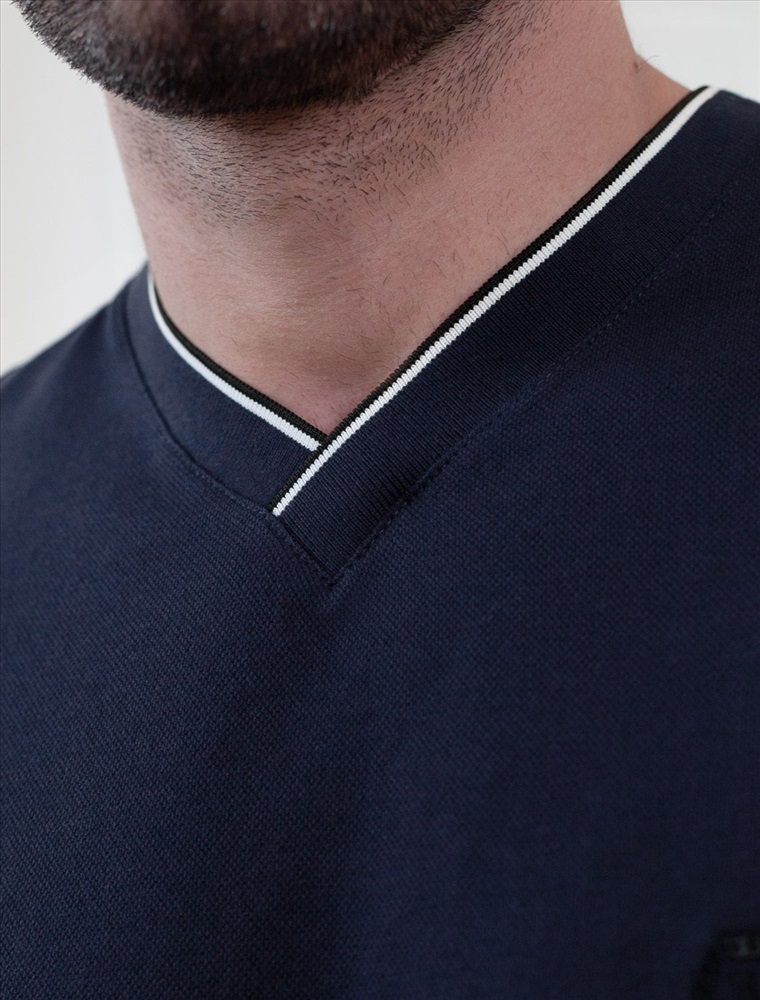 Плотность: 170 Г/м2 Футболка темно-синего цвета с аккуратным V-образным вырезом выполнена из премиального хлопка с эластаном плотностью 200 Г/м2. Высококачественный эластичный хлопок обеспечивает мягкость, воздухопроницаемость и идеальную посадку на любую фигуру и размеры, включая 58 размер. Классический прямой крой футболки подчеркивает фигуру, но не сковывает движений. Элегантный небольшой V-образный вырез с контрастной полосой визуально удлиняет шею, а минималистичная вышивка на груди в виде логотипа бренда добавляет изысканности и индивидуальности, не перегружая образ. Эта базовая футболка - идеальный баланс комфорта и стиля для современного мужчины, легко сочетается с разными низами, создавая образ от кэжуал до более элегантного. Стильная футболка подходит как для повседневной носки, так и для создания более нарядных образов. Комментарии к товару