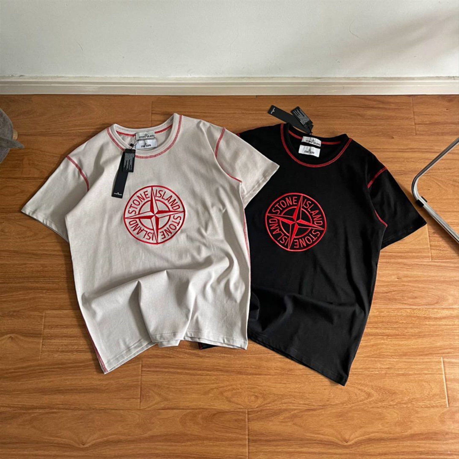 Футболка с вышитым логотипом на груди 2 цвета