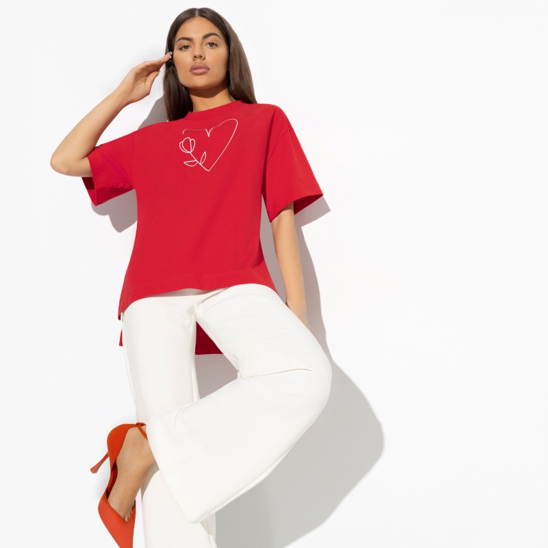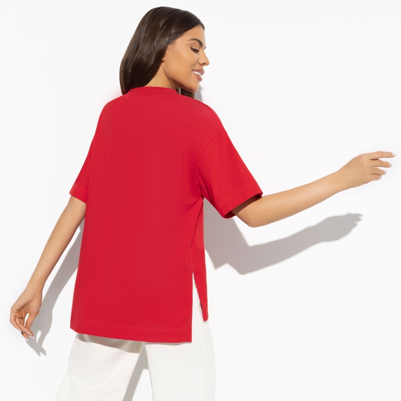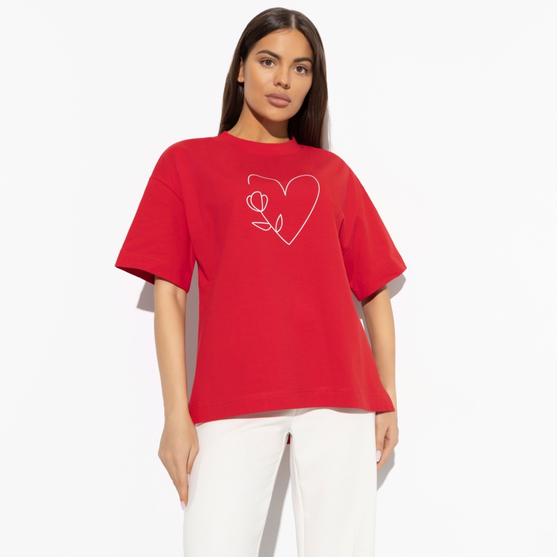Состав: Трикотаж «кулир пенье» (95% хлопок, 5% лайкра) Плотность ткани: Тонкая Тип ткани: Трикотаж Вид застежки: Нет Карманы: Нет Основной цвет ткани: Красный Отрезная талия: Нет Подклад: Нет Резинка по талии: Нет Рисунок/раппорт: Нет, все изделия идентичны Сезон: Круглогодичный Эта футболка — ваша визитная карточка. В ней заключены не только стиль и комфорт, но и некая загадка, которая призывает к общению и веселью. Независимо от того, где вы находитесь — на вечеринке с друзьями или на прогулке в парке, эта футболка сделает вас центром внимания. Вы точно знаете ответ на любой вопрос, и ваша футболка станет символом вашей уверенности и интеллекта. Эта футболка изготовлена из трикотажа «кулир пенье», который сочетает в себе высококачественный хлопок (95%) с добавлением лайкры (5%). Этот состав материала обеспечивает непревзойденный комфорт и мягкость вашей коже, позволяя коже дышать в течение всего дня. Вы будете ощущать себя свободно и комфортно в любой ситуации, не зависимо от погоды. Эта футболка не просто предмет гардероба — это часть вашей личности. Черный цвет и стильный цветочный принт делают ее уникальной и элегантной. Она подчеркнет ваш неповторимый стиль и добавит изюминку к вашему образу. Носите ее с уверенностью и смелостью, выделяйтесь из толпы и покажите миру свою уникальность. Комментарии к товару