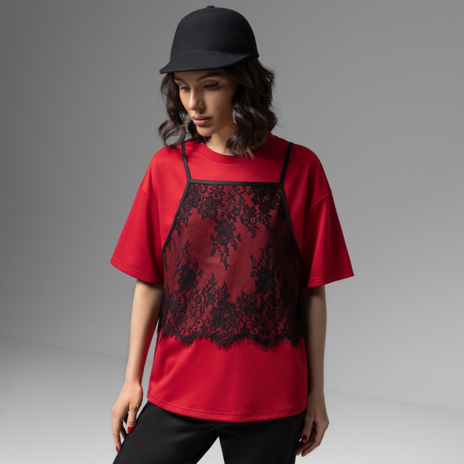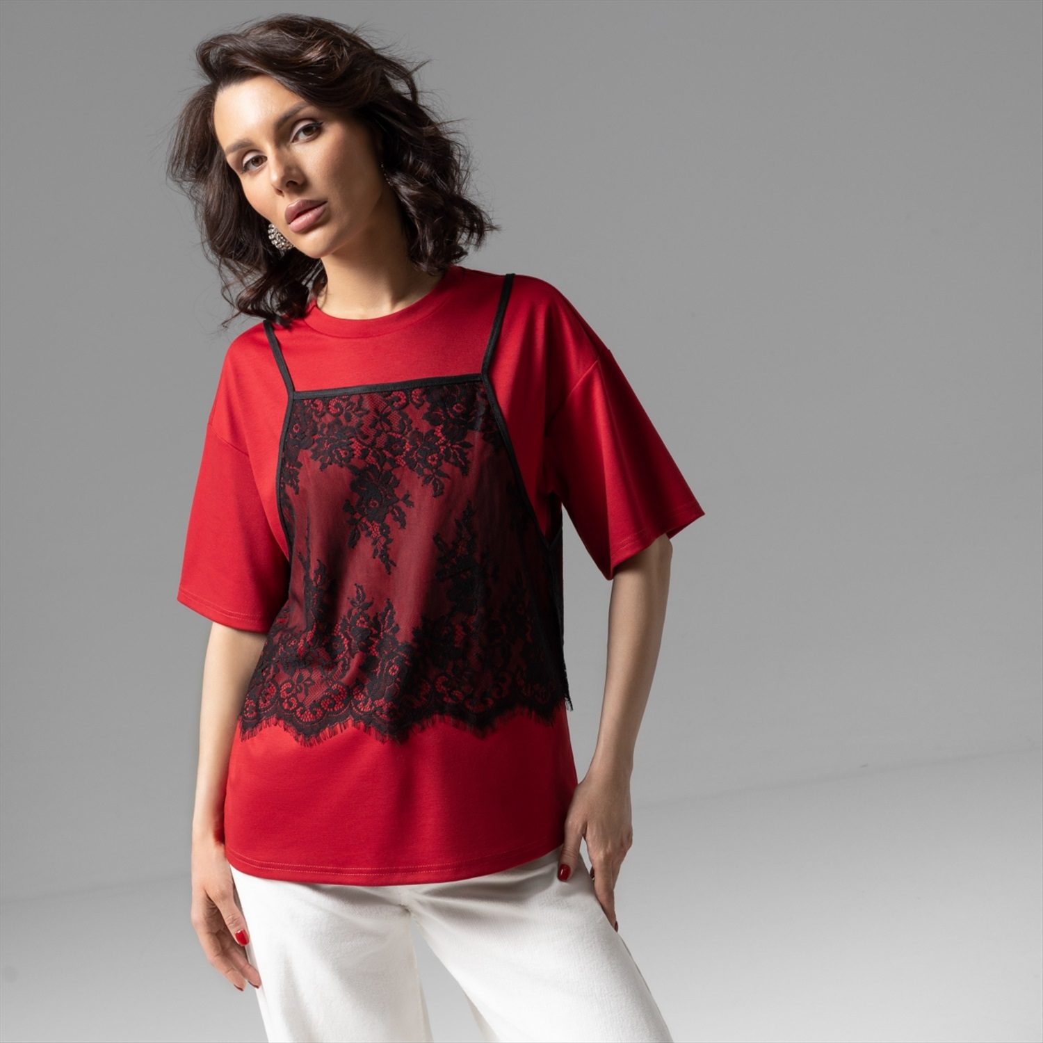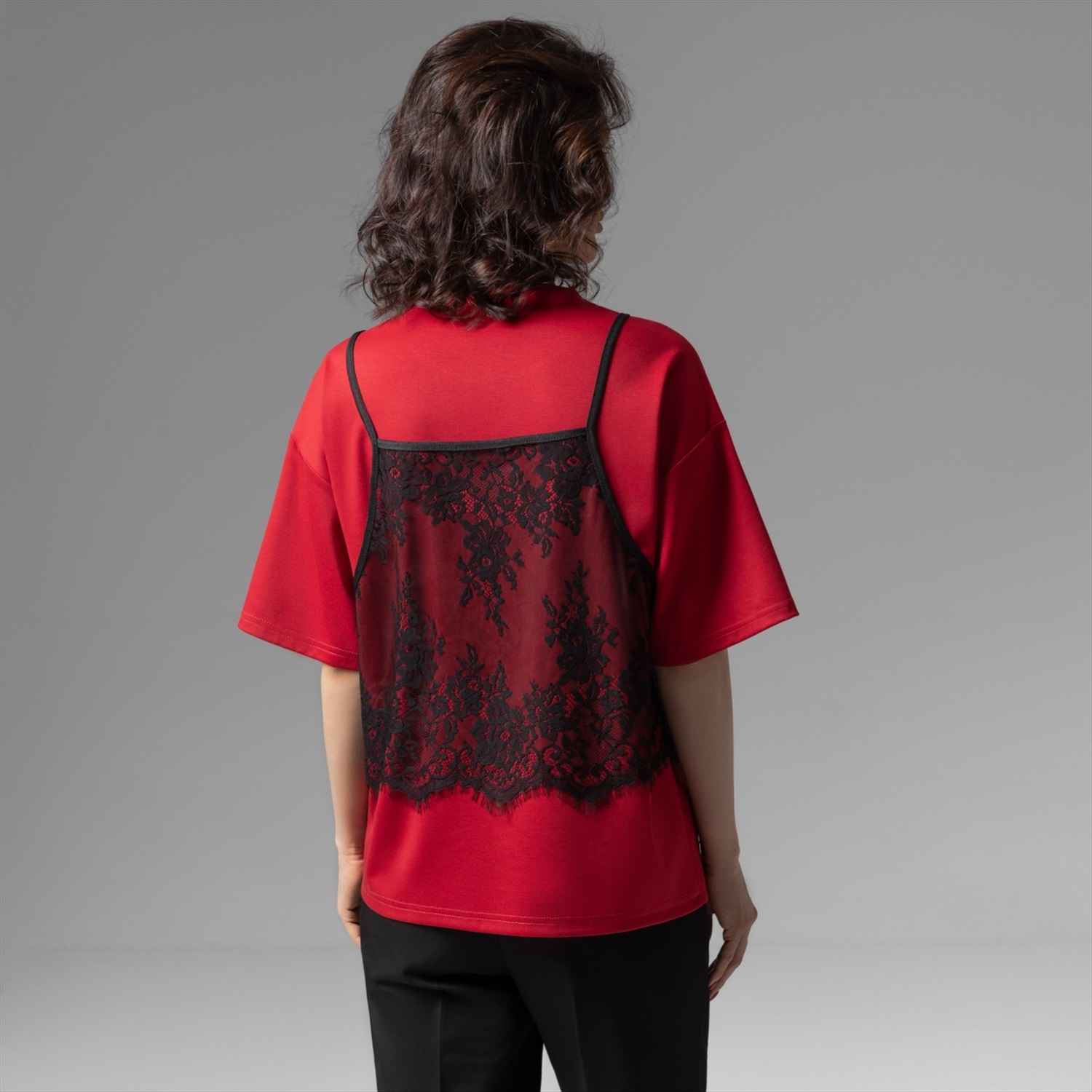 Состав: Трикотаж «понтирома», «кружево» (65% полиэстер, 30% вискоза, 5% спандекс) Плотность ткани: Средняя Тип ткани: Трикотаж Вид застежки: Нет Декоративные элементы: Другое Дополнительный цвет ткани: Черный Карманы: Нет Основной цвет ткани: Красный Отрезная талия: Нет Подклад: Нет Резинка по талии: Нет Рисунок/раппорт: Нет, все изделия идентичны Сезон: Круглогодичный Силуэт: Свободный Стиль: Повседневный Параметры модели на фото: