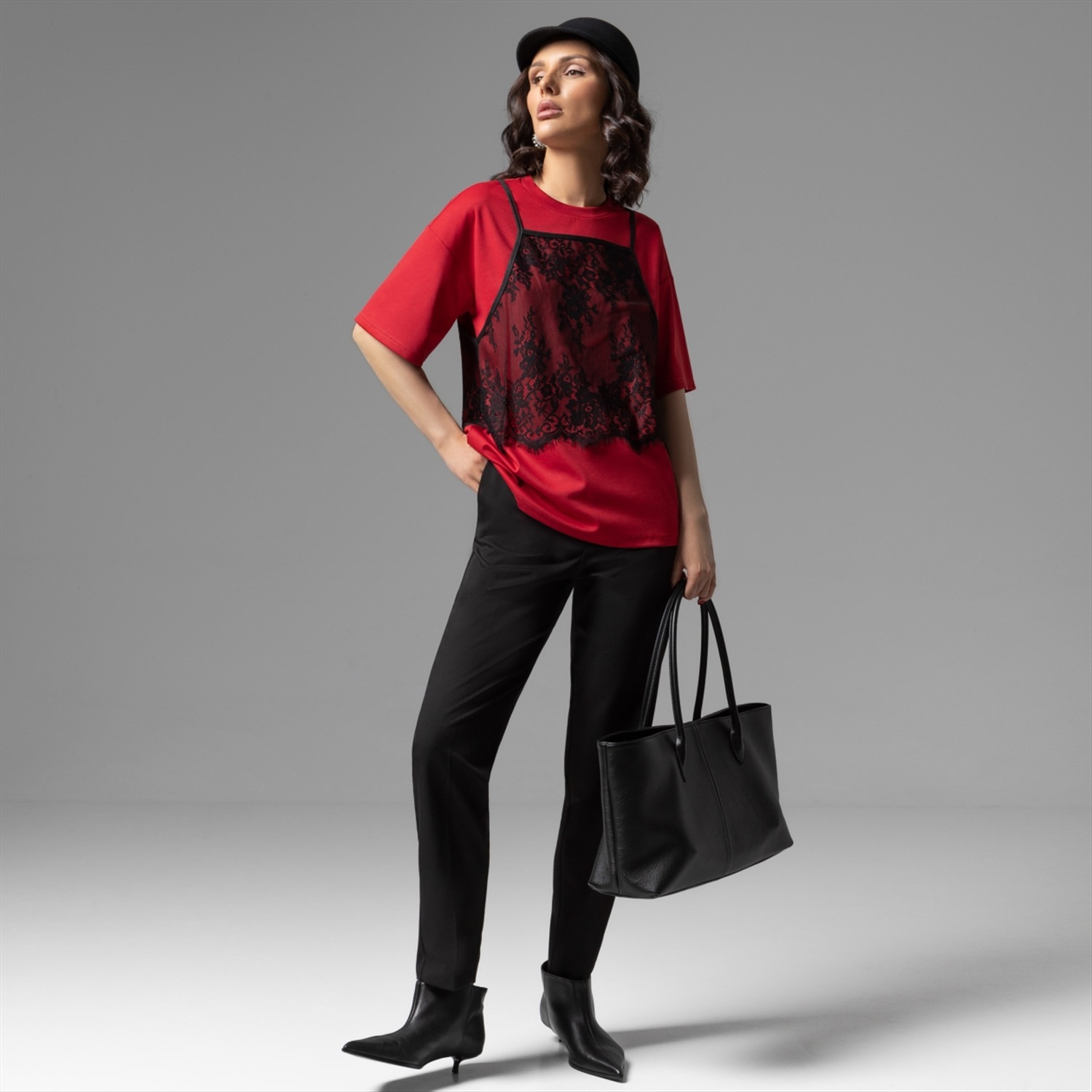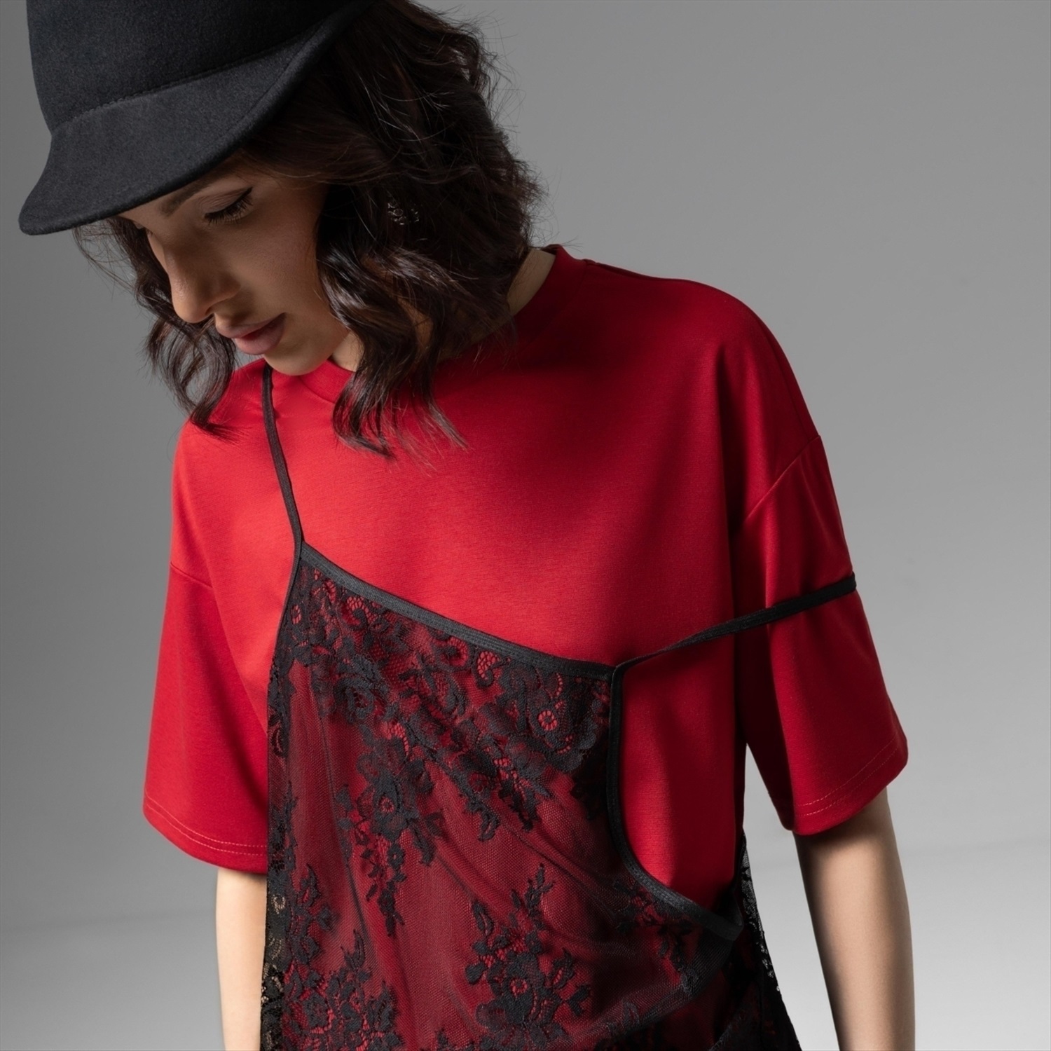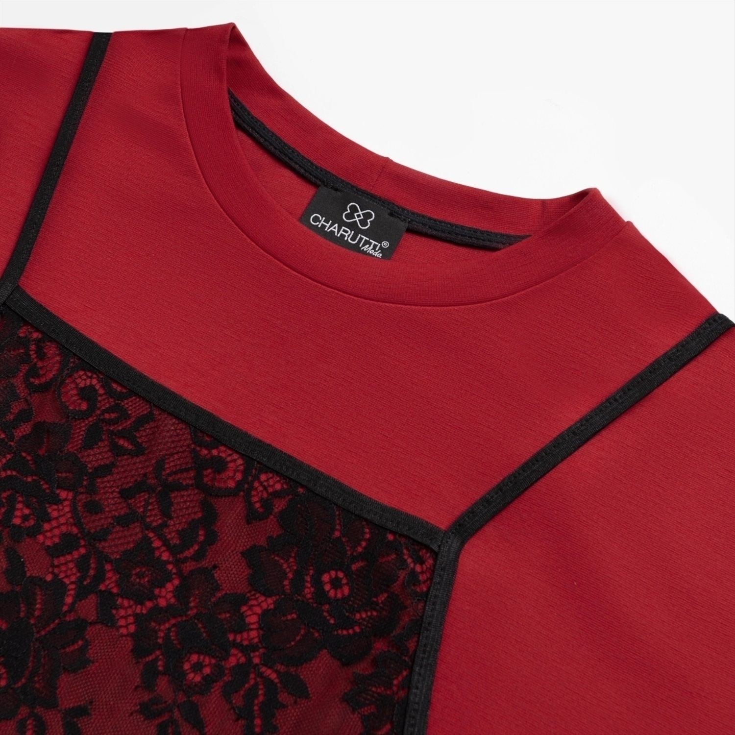 Состав: Трикотаж «понтирома», «кружево» (65% полиэстер, 30% вискоза, 5% спандекс) Плотность ткани: Средняя Тип ткани: Трикотаж Вид застежки: Нет Декоративные элементы: Другое Дополнительный цвет ткани: Черный Карманы: Нет Основной цвет ткани: Красный Отрезная талия: Нет Подклад: Нет Резинка по талии: Нет Рисунок/раппорт: Нет, все изделия идентичны Сезон: Круглогодичный Силуэт: Свободный Стиль: Повседневный Параметры модели на фото: