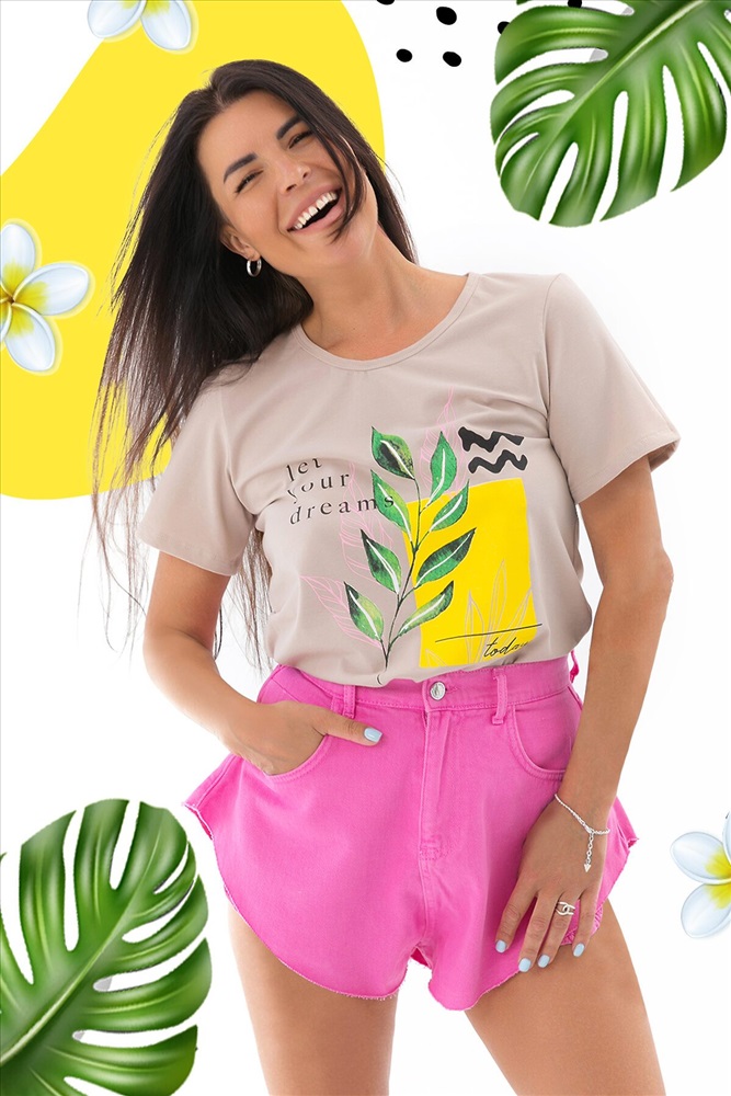 ID товара: 876711 Состав: 95% Хлопок, 5% Лайкра Сезон: Весна/Лето Длина: Средняя Фасон: Прямой Рукав: короткие Вырез горловины: Округлый Рисунок: растительный Декоративные элементы: Печатный принт Основная ткань: Кулирка с лайкрой Стиль: повседневный Страна бренда: Россия Страна производства: Россия Женская футболка с модным принтом. Отличное качество, стильный дизайн, современный крой. Комментарии к товару