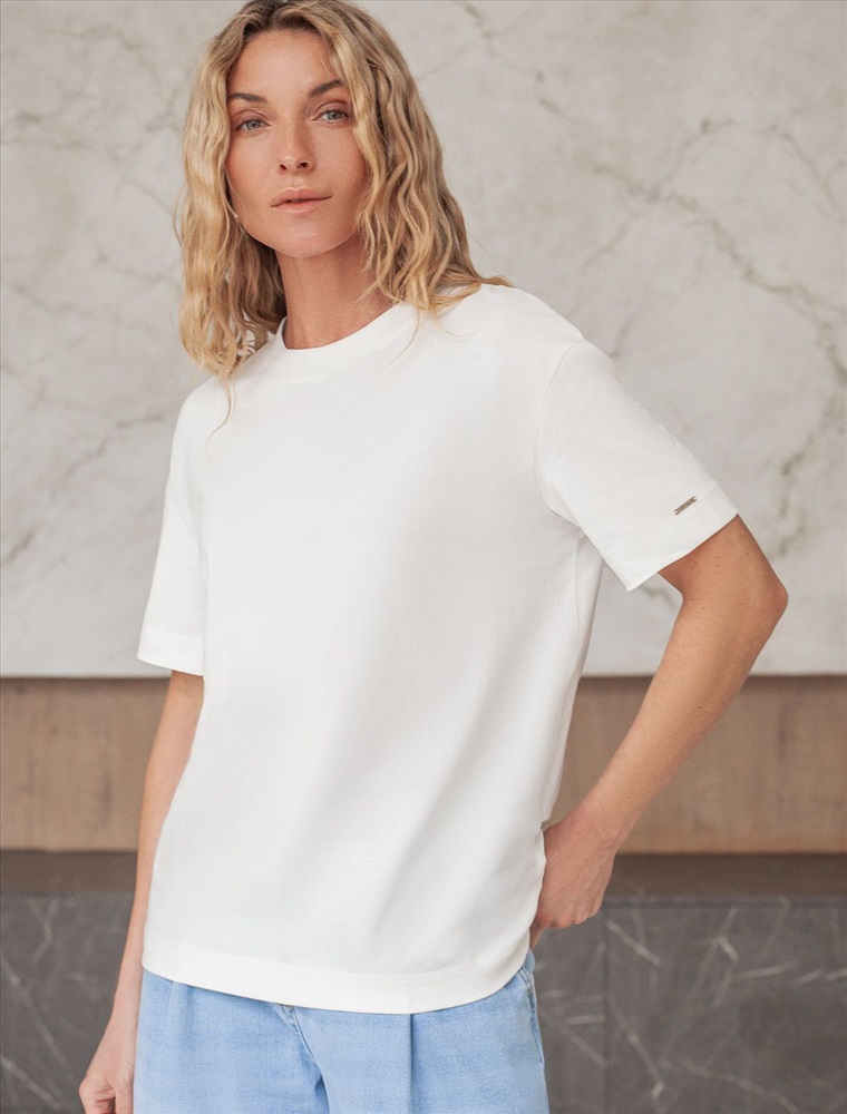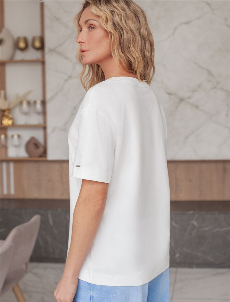 Актуальные цвета подчеркивают современность футболки, делая ее отличным вариантом как для повседневной носки, так и более праздничных случаев. Круглый вырез горловины дополняет общий минималистичный дизайн изделия, создавая аккуратный силуэт. Такой фасон уместен для работы в офисе, для городского стиля, дома, в неформальной обстановке или даже на деловых встречах.