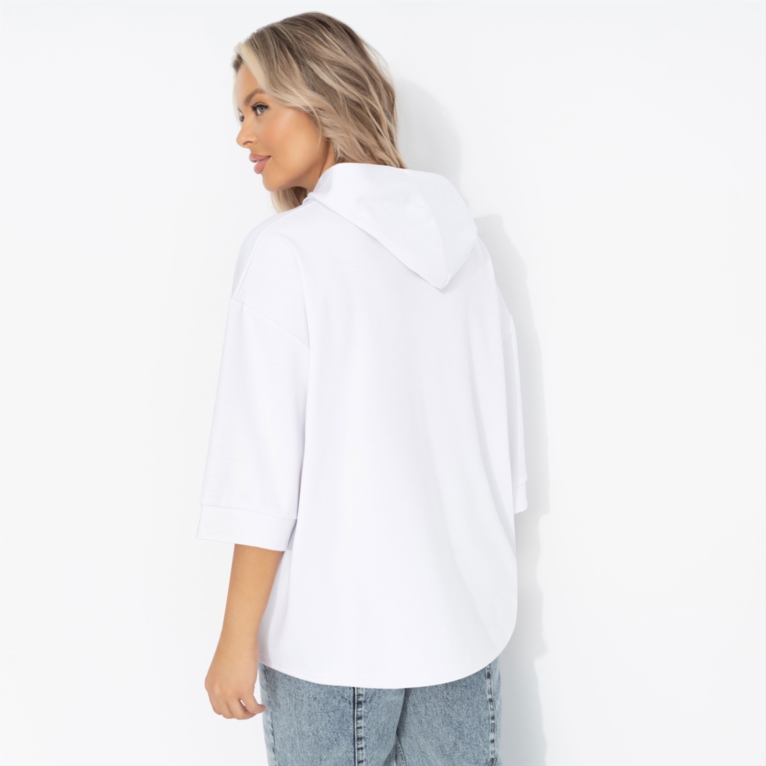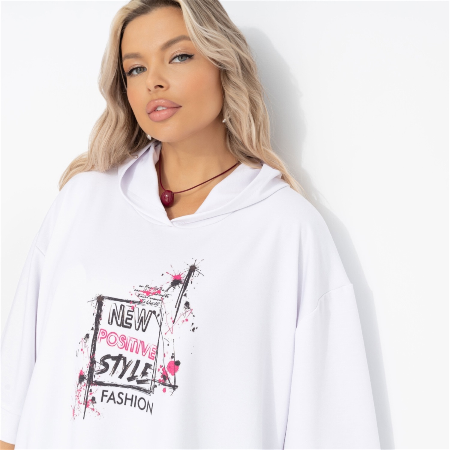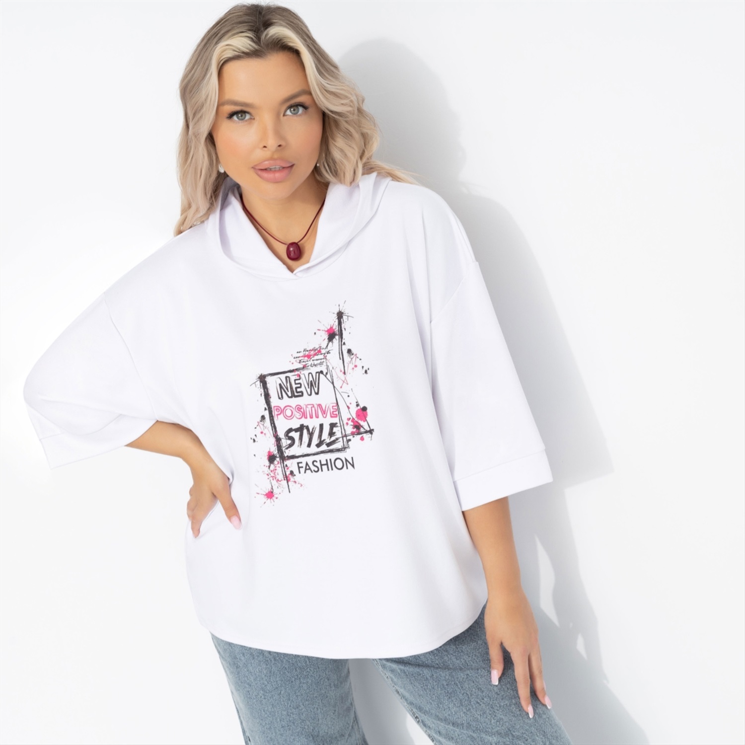 Состав: Милано (65% п/э, 30% вискоза, 5% стрейч) Плотность ткани: Средняя Тип ткани: Трикотаж Вид застежки: Нет Карманы: Нет Основной цвет ткани: Белый Отрезная талия: Нет Подклад: Нет Резинка по талии: Нет Рисунок/раппорт: Каждое изделие уникально из-за расположения рисунка на ткани Сезон: Круглогодичный Силуэт: Свободный Стиль: Повседневный Параметры модели на фото: