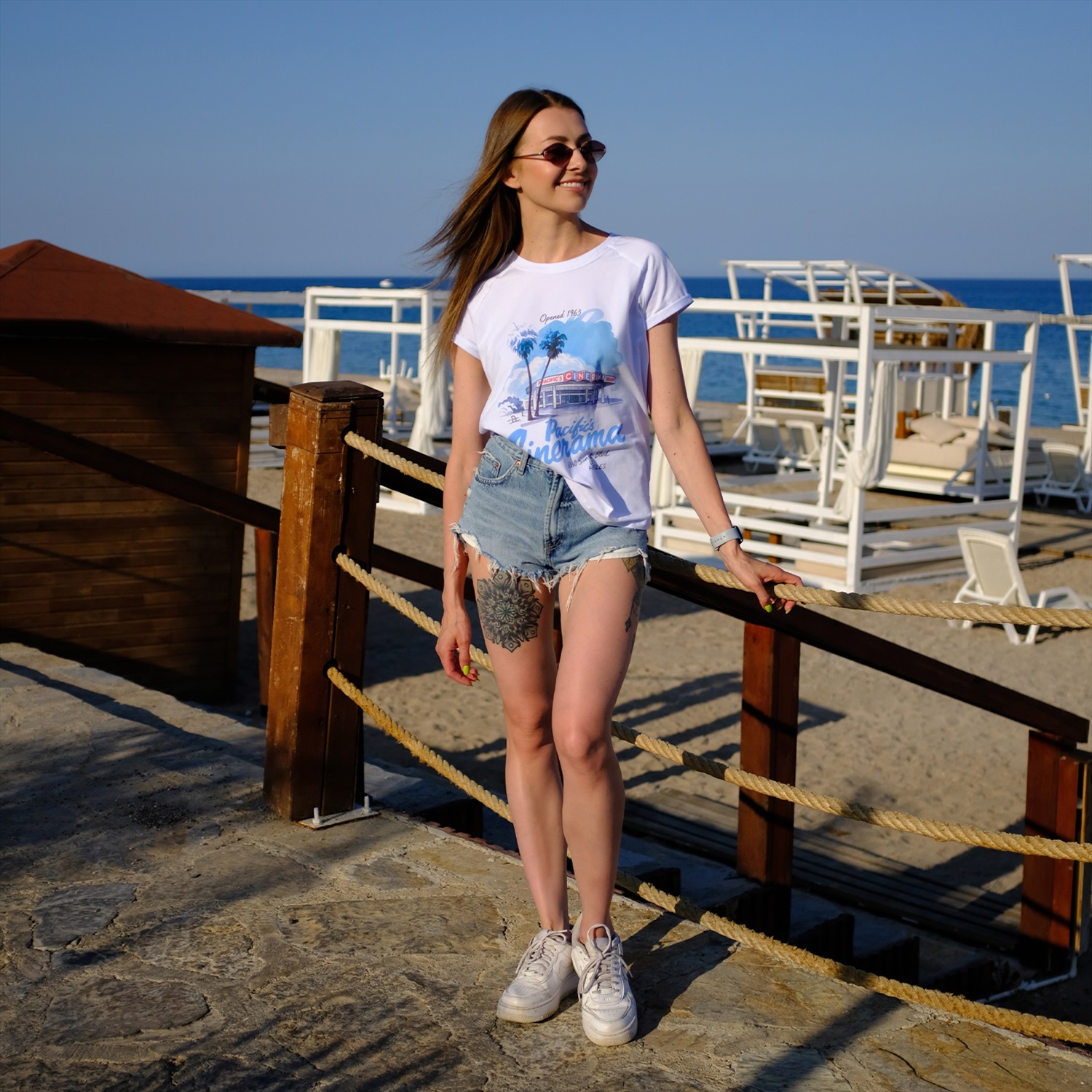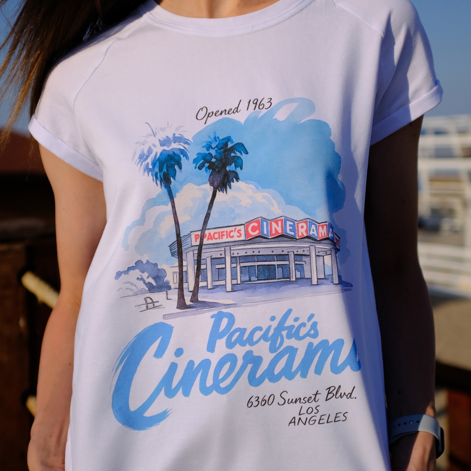 Женская футболка свободного кроя, короткий рукав реглан с отворотом (принт "Pacific Cinema").Материал: