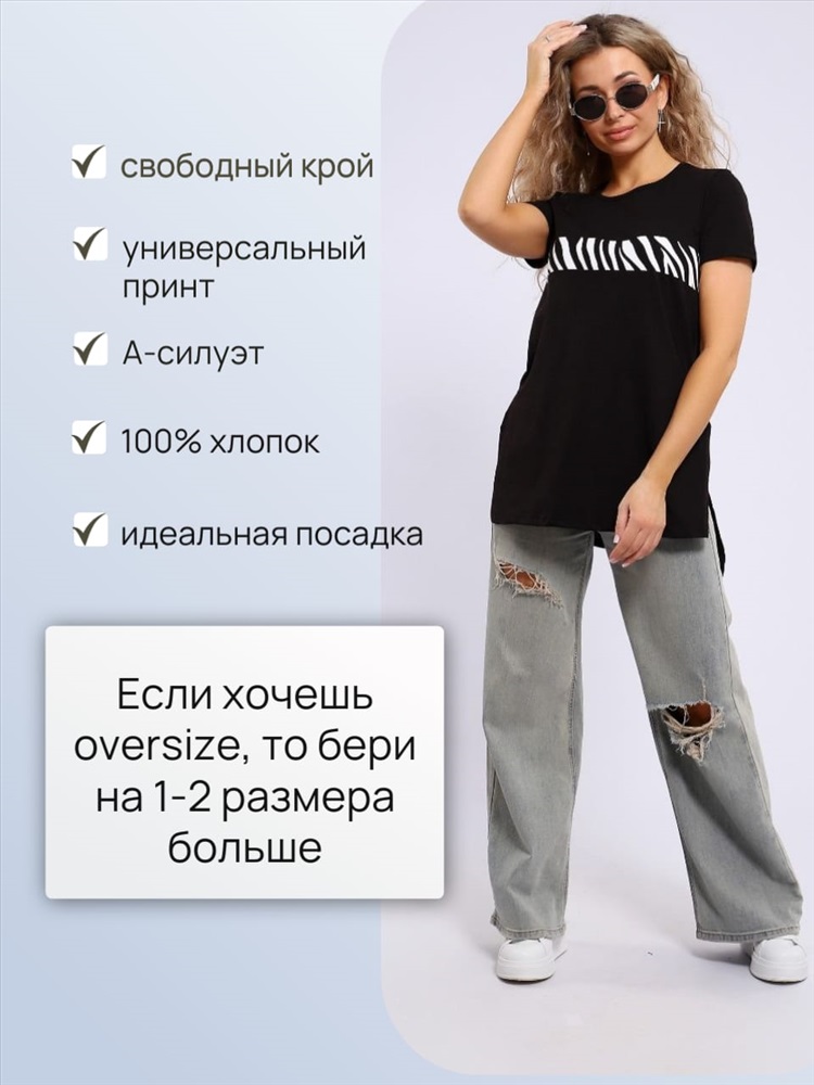 Состав: 100% хлопок Модель: Футболка-туника Княгиня Тип товара: туника Материал: кулирка | кулирка Бренд: Княгиня Карман: без карманов Рисунок: анималистичный Рукав: короткий рукав Сезонность: лето | осень | весна Силуэт: прямой | свободный Скидка: любая Стиль: повседневный Воротник: без воротника Застежка: без застежки Женская туника с классным принтом станет отличным выбором для повседневного ношения. Изготовленная из мягкого трикотажа, она обеспечивает комфорт в течение всего дня. Легкий хлопок позволяет коже дышать, а удлиненная модель с длинной спинкой и разрезами по бокам делает её стильной и практичной. Однотонная черная основа легко комбинируется с различными аксессуарами и обувью, что позволяет создать разнообразные образы, в том числе спортивные. Эта домашняя одежда подходит не только для расслабленных вечеров, но и для прогулок в теплую летнюю погоду. Удобный крой подчеркивает фигуру, а длина туники позволяет скрыть недостатки. Размеры подходят для женщин больших размеров, что делает её универсальным элементом гардероба. Привнесите немного свежести в свой стиль с этой красивой туникой, которая будет радовать вас каждый день. Таблица размеров и веса