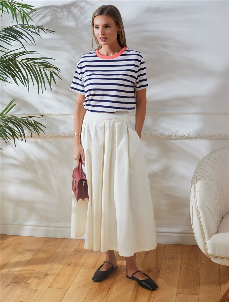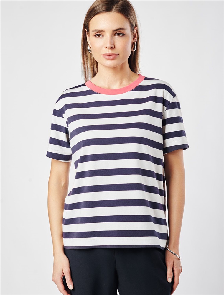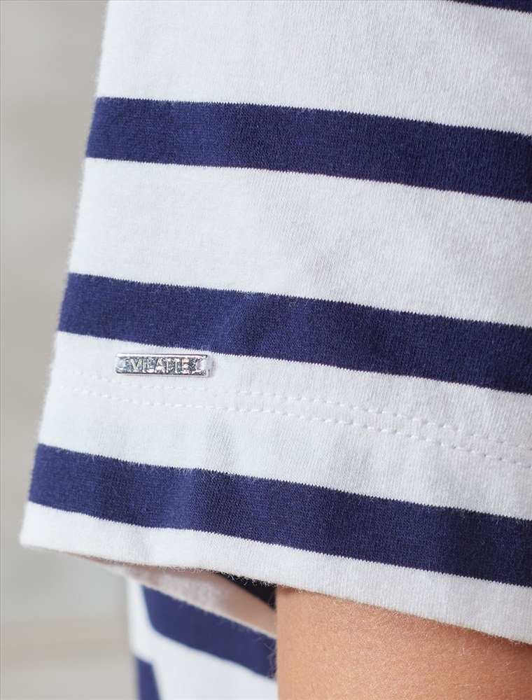 Базовая футболка в бело-синюю полоску выполнена из премиального дышащего хлопка с добавлением эластана. Эта футболка идеально подходит для создания стильного образа. Классический вариант на лето или как нижний слой в прохладное время года.Футболка отлично держит форму и не теряет привлекательности даже после многочисленных стирок. Базовая полосатая футболка с ярким акцентом легко комбинируется с различными предметами гардероба и станет неотъемлемой частью вашего образа. Футболка из натурального хлопка идеально подойдет для создания стильных и молодежных образов. Модная футболка в полоску – это возможность выразить себя и подчеркнуть свою уникальность.