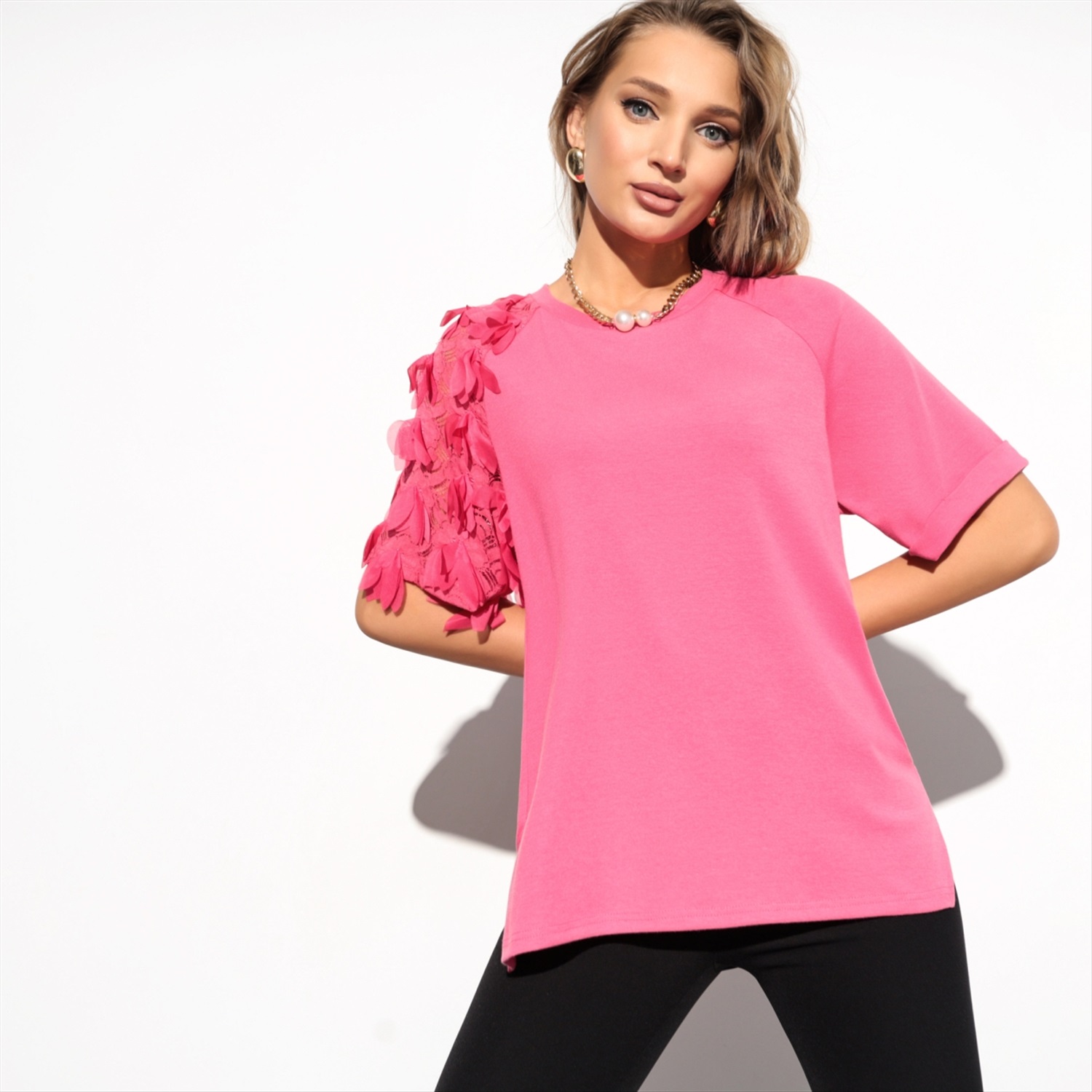 Состав: Трикотаж «рибана», «кружево» (65% п/э, 30% вискоза, 5% спандекс) Плотность ткани: Средняя Тип ткани: Трикотаж Вид застежки: Нет Карманы: Нет Основной цвет ткани: Розовый Отрезная талия: Нет Подклад: Нет Резинка по талии: Нет Рисунок/раппорт: Каждое изделие уникально из-за расположения рисунка на ткани Сезон: Круглогодичный Погрузитесь в мир изысканных тканей и неотразимого стиля с нашей футболкой «Закружила Любовь». Это не просто футболка, это произведение искусства, которое подчеркнет вашу индивидуальность и элегантность. Сочетание трикотажа «рибана» и изысканного кружева создает впечатляющий визуальный образ, который будет привлекать восхищенные взгляды. Наша футболка не только восхитительно выглядит, но и обеспечивает непревзойденный комфорт в течение всего дня. Изготовленная из высококачественных материалов, включая трикотаж «рибана» и кружево, она нежно обхватывает вашу фигуру, обеспечивая при этом максимальную свободу движения и воздушность. Эксклюзивность и Уникальность Футболка «Закружила Любовь» — это не просто одежда, это выражение вашей индивидуальности. Благодаря утонченному дизайну и неповторимому стилю вы будете выделяться из толпы и привлекать восхищенные взгляды окружающих. Позвольте себе быть уникальной и неповторимой с этой захватывающей футболкой. Комментарии к товару