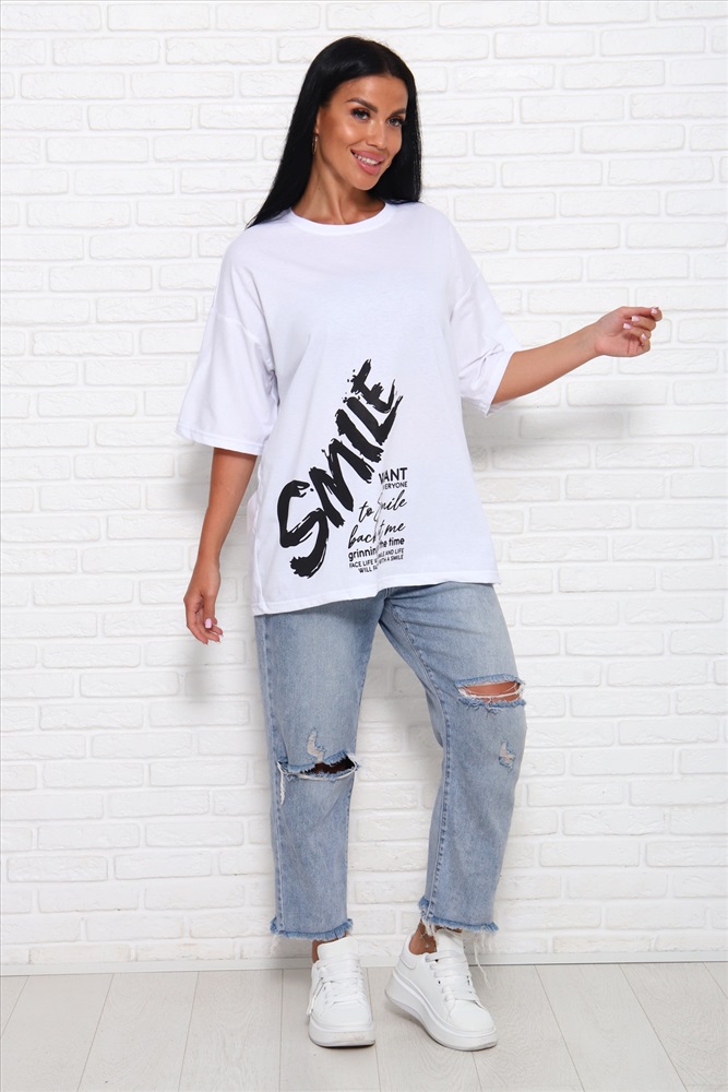Состав: Хлопок 100% Модель: Футболка женская 20505 Тип товара: футболка Материал: кулирка | кулирка Бренд: Натали Суслова Отделка: с печатью Рисунок: надпись Рукав: короткий рукав Сезонность: лето | осень | весна Силуэт: оверсайз | свободный Стиль: повседневный Модель свободного силуэта с принтом шелкография. Горловина круглая обработана обтачкой. Рукав спущенный, выше локтя. Таблица размеров и веса