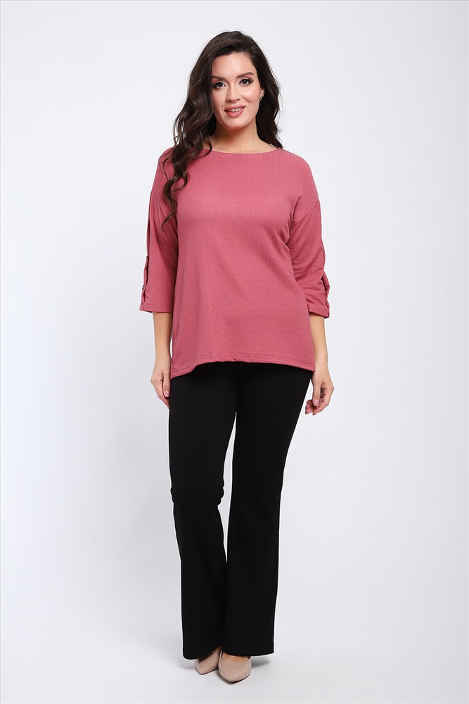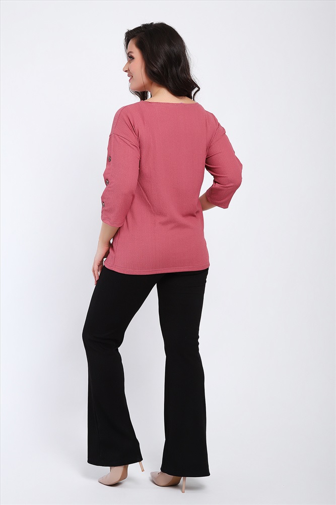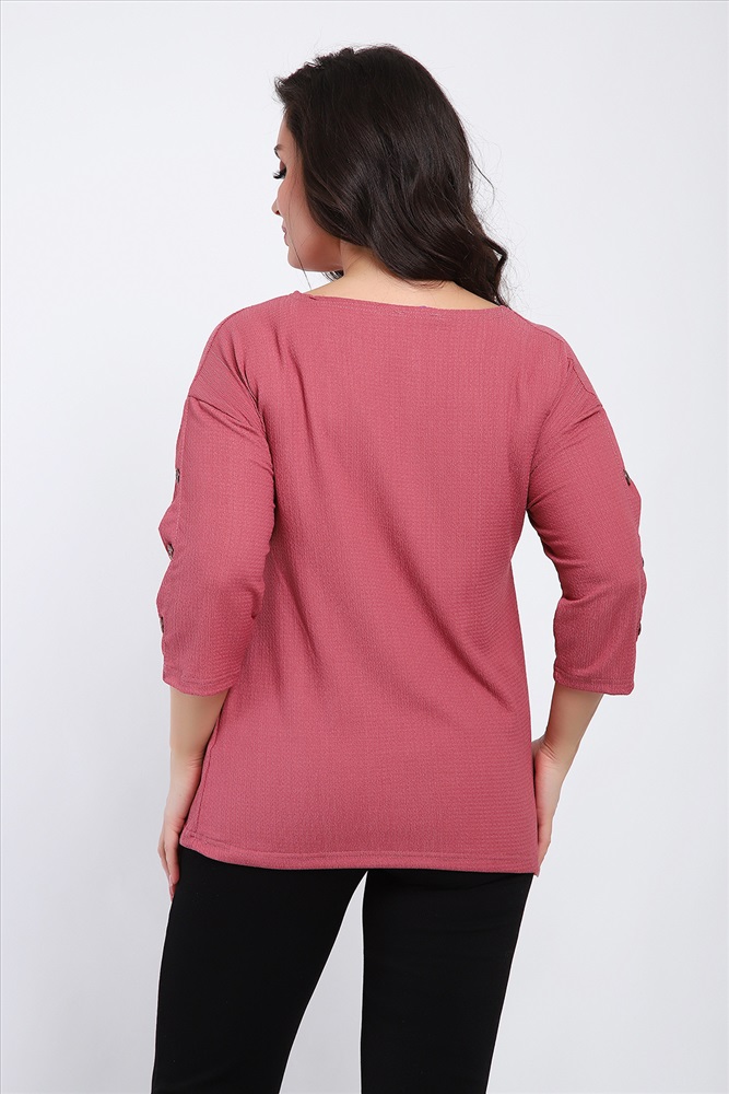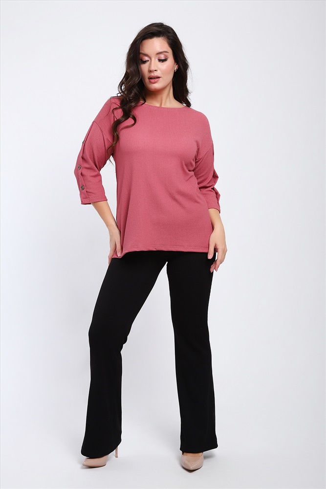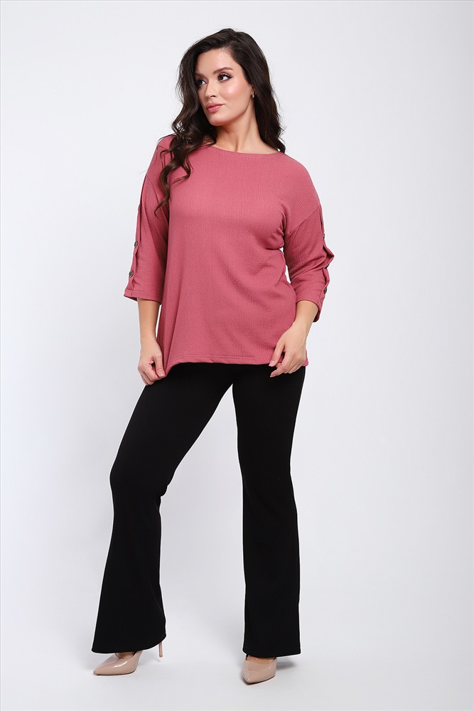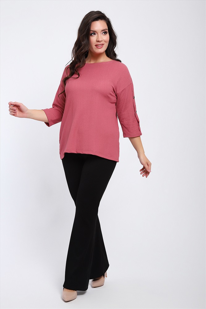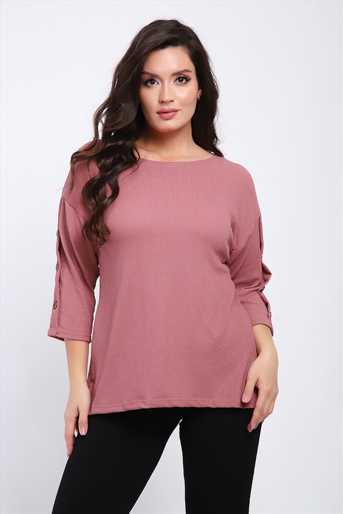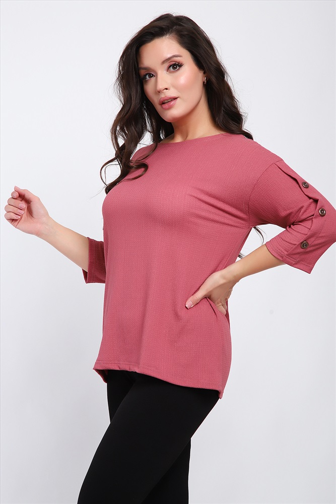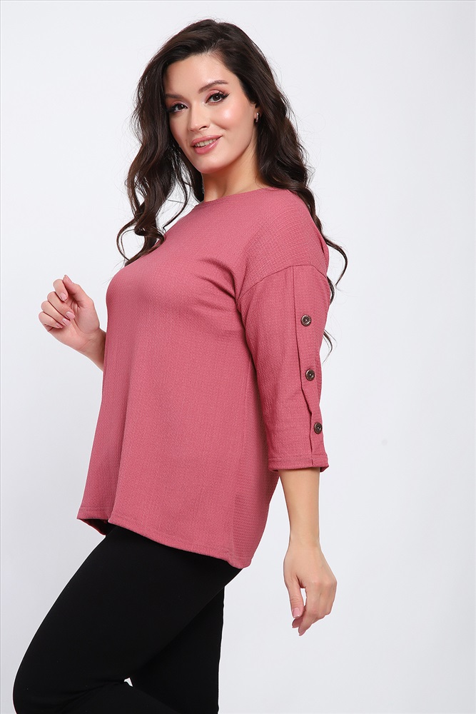 Стиль: офисный | повседневный Футболка женская свободного прилегания с рукавами 3/4, украшенная пуговицами на рукавах.