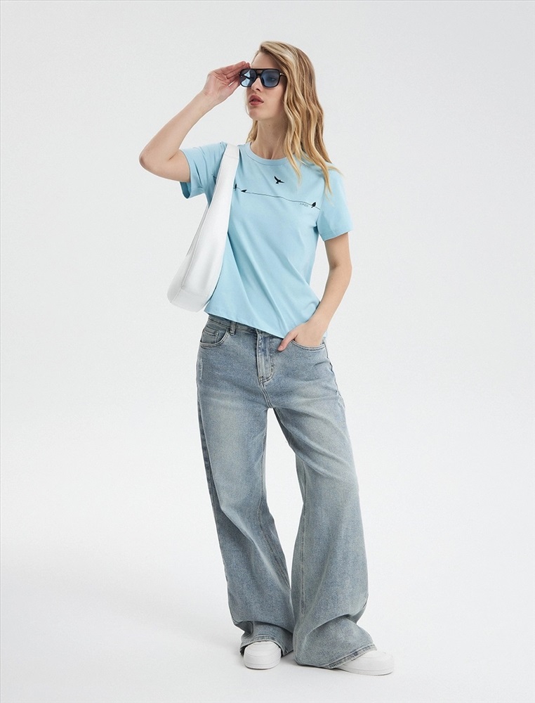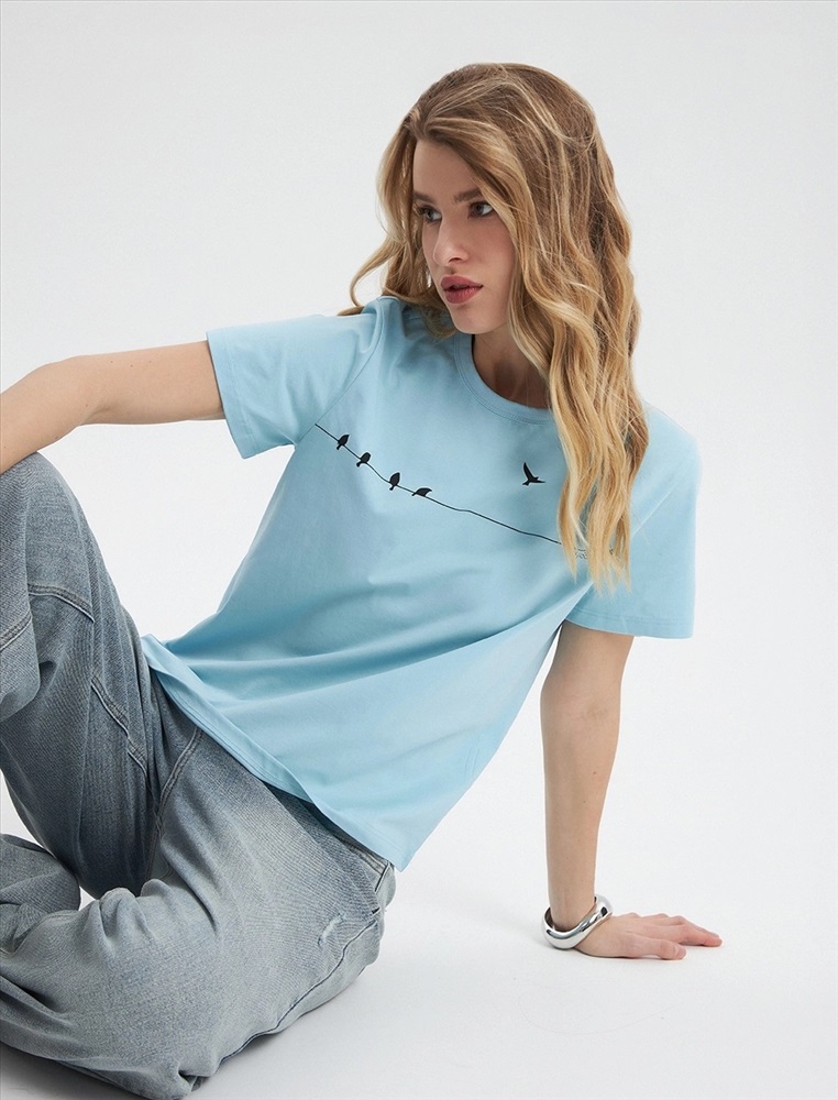 Базовая футболка регулярного силуэта с принтом по передней части изделия 95% хлопок, 5% спандекс Комментарии к товару