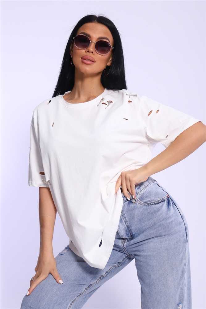 Состав: 100% Хлопок Модель: Футболка женская 64543 Тип товара: футболка Материал: кулирка пенье | кулирка пенье Бренд: Натали Суслова Длина: длинный Рейтинг: Рейтинг 4 и выше Рисунок: однотонные Рукав: короткий рукав Сезонность: лето | осень | весна | зима Силуэт: оверсайз | свободный Скидка: любая | от 10% и больше | от 30% и больше | от 50% и больше Стиль: молодежный | повседневный Рваная женская футболка с булавками. Изготовлена из хлопка, очень плотная и не просвечивает.Oversize подходит всем типам фигур. Свободная посадка и прямой крой дает возможность носить футболку на выпуск или заправлять. Футболка отлично подойдёт для создания повседневных образов. Дырки расположены на рукавах, плечах, спереди и сзади. Рукав спущенный и не сковывает движения. Длина рукава указана от плечевого шва. Производство Китай. Таблица размеров и веса