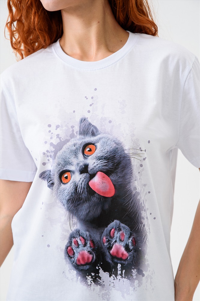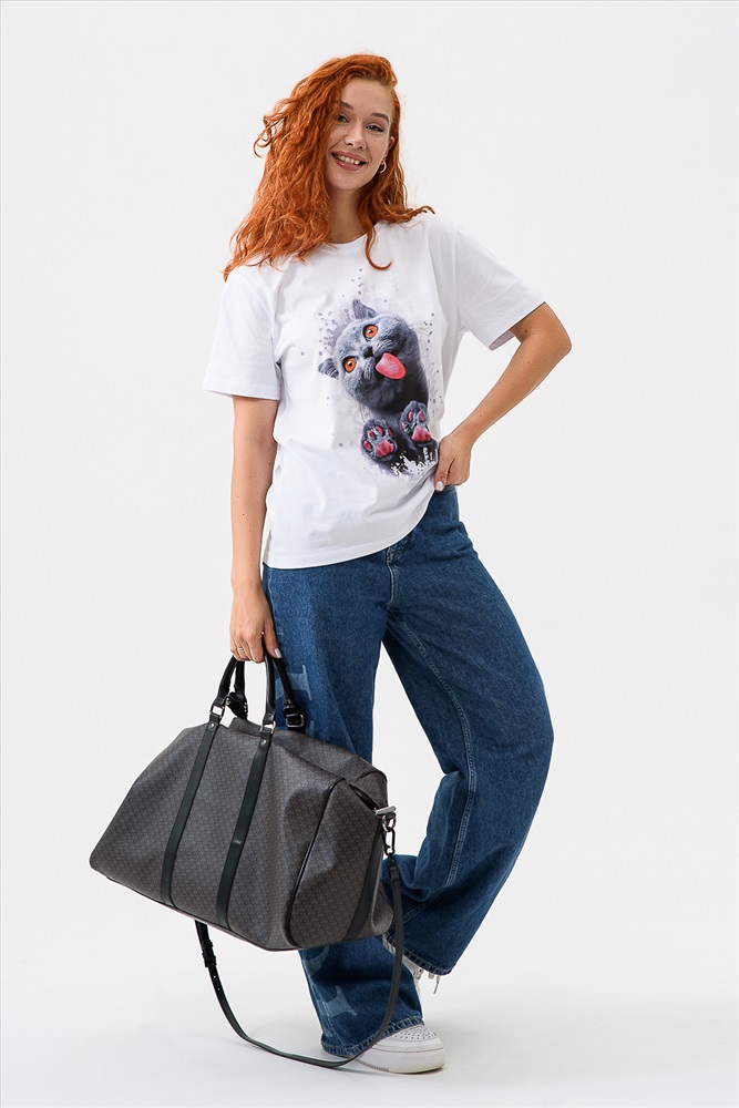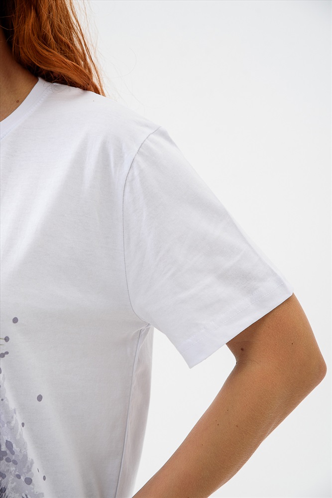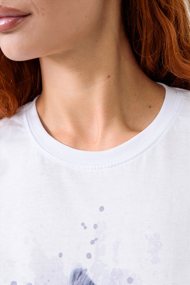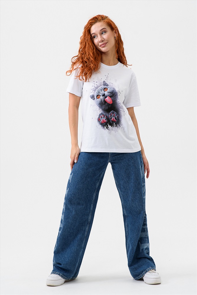 Стиль: повседневный Футболка прямая, свободная, средней длины, с округлой горловиной. Рукав короткий. Горловина обработана эластичной обтачкой.