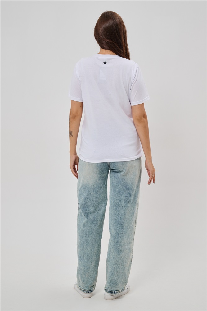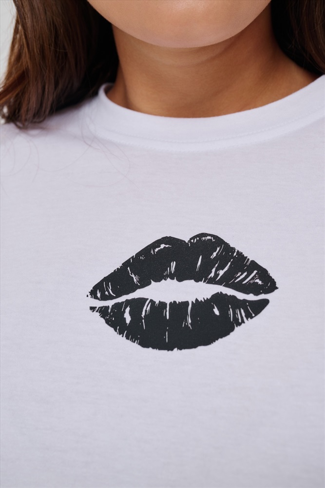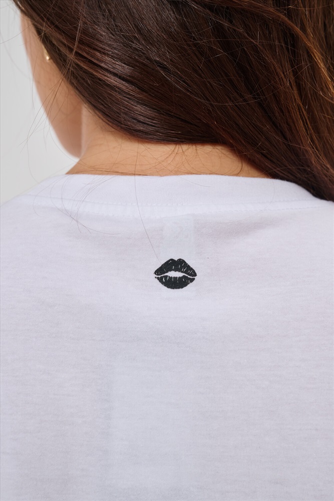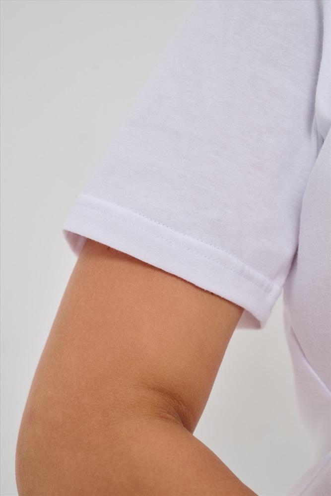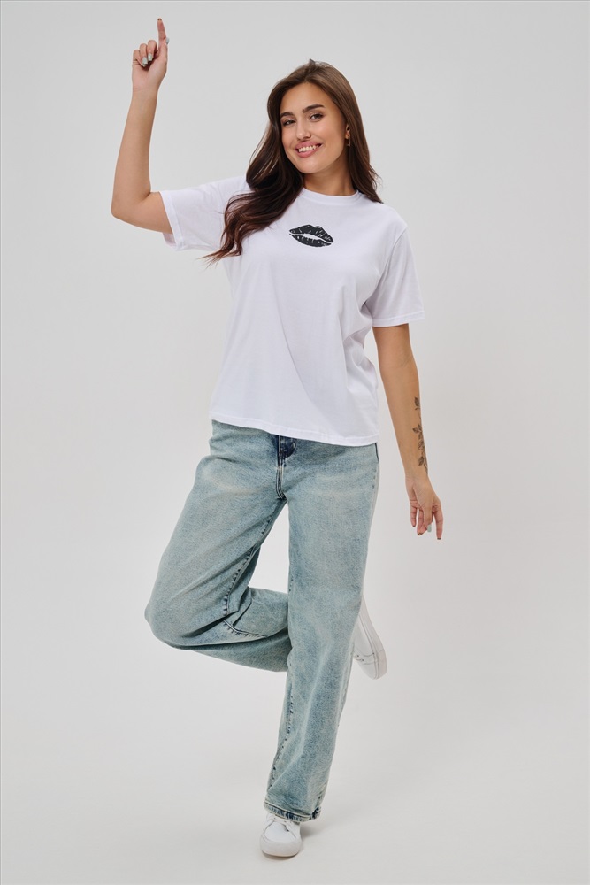 Стиль: повседневный Женская футболка приталенного силуэта, выполненная из мягкой и приятной к телу кулирки. Модель отличается лаконичностью и удобством благодаря укороченным рукавам и аккуратному круглому вырезу горловины. Изюминкой изделия является минималистичный принт в виде груб, выполненные в чёрном оттенке. Футболка универсальна, легко сочетается с различными элементами гардероба и станет отличным выбором для повседневной носки, подчёркивая женственную фигуру и индивидуальность своей обладательницы.