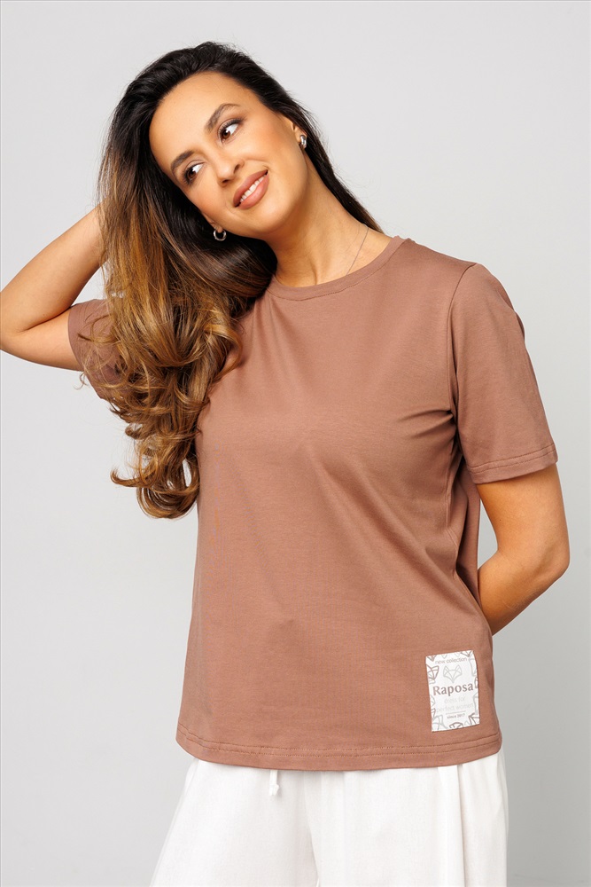 Стиль: повседневный Футболка женская от Raposa это идеальный выбор для современных девушек, ценящих комфорт и стиль. Изготовленная из мягкого и дышащего материала, состоящего из 92% хлопка и 8% лайкры, она подарит Вам ощущение легкости и свободы движений. Модель с коротким рукавом и свободным кроем оверсайз идеально подходит для жарких летних дней, а также станет отличным вариантом для домашней одежды. Благодаря универсальному коричневому цвету и отсутствию рисунка, однотонная футболка легко сочетается с любыми элементами гардероба, под пиджак. Хороша как футболка в офис женская или блузка повседневная. Наличие нашивки с названием бренда Raposa добавляет стильный акцент. Кофточка подходит для полных девушек больших размеров плюс сайз до 54 и 56 и для высоких и невысоких, обеспечивая комфортную посадку. Футболка с принтом станет незаменимой как для повседневной носки, так и для занятий спортом, фитнесом, на физкультуру в школу или просто для отдыха на пляже. Благодаря натуральному составу хлопка, футболка мокко мусс приятна к телу и не вызывает аллергических реакций. Модель прекрасно подойдет для беременных женщин, а также для девушек-подростков, которые предпочитают стиль кэжуал или y2k. Футболка Raposa это элегантная классика и базовый элемент гардероба, который станет Вашим верным спутником в любой ситуации и поможет в создании нарядного образа на каждый день. Хлопковая футболка - отличный подарок подруге, маме на любой праздник, на 8 марта.
