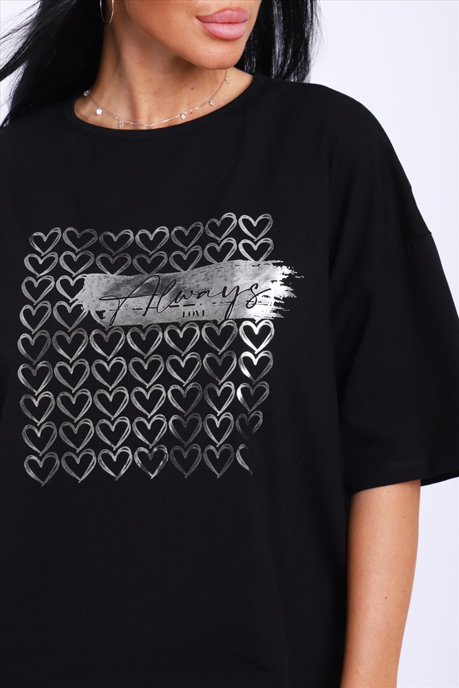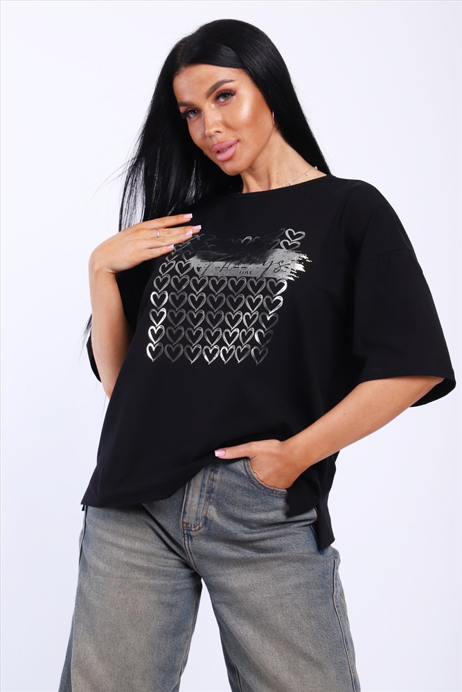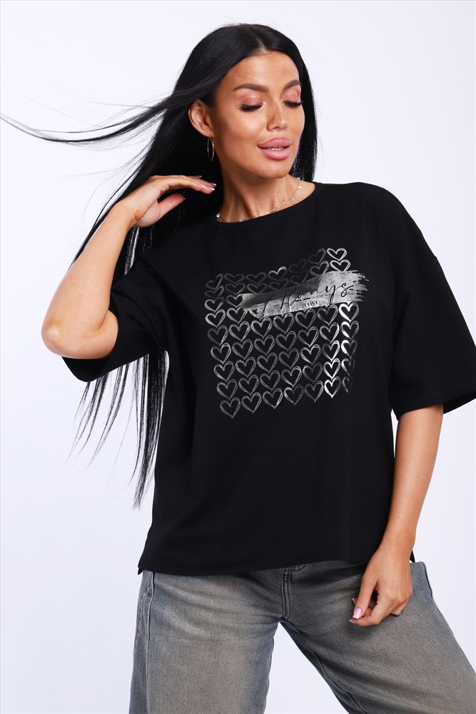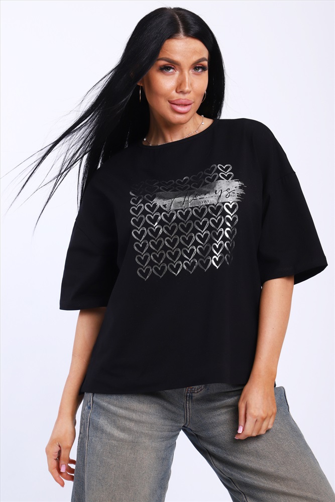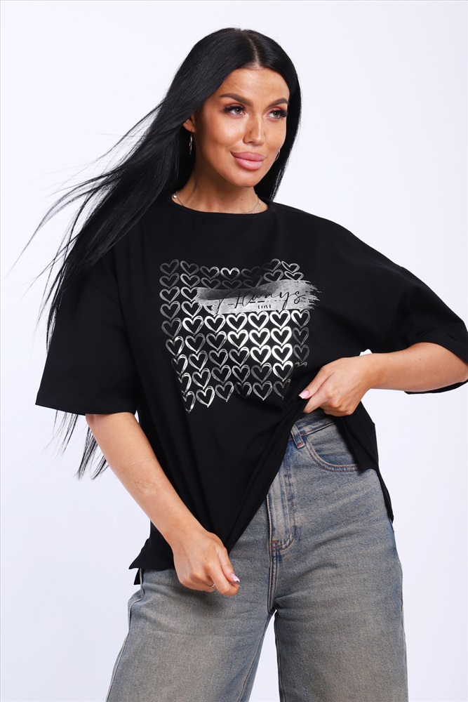 Состав: 92% хлопок; 8% лайкра Модель: Футболка женская черная-99.с Тип товара: футболка Материал: кулирка с лайкрой | кулирка с лайкрой Бренд: NINEL Отделка: с печатью Рисунок: надпись | сердечки Рукав: короткий рукав Сезонность: лето | осень | весна | зима Силуэт: свободный Стиль: повседневный Женская футболка премиум качества в базовом цвете с модным принтом. Таблица размеров и веса