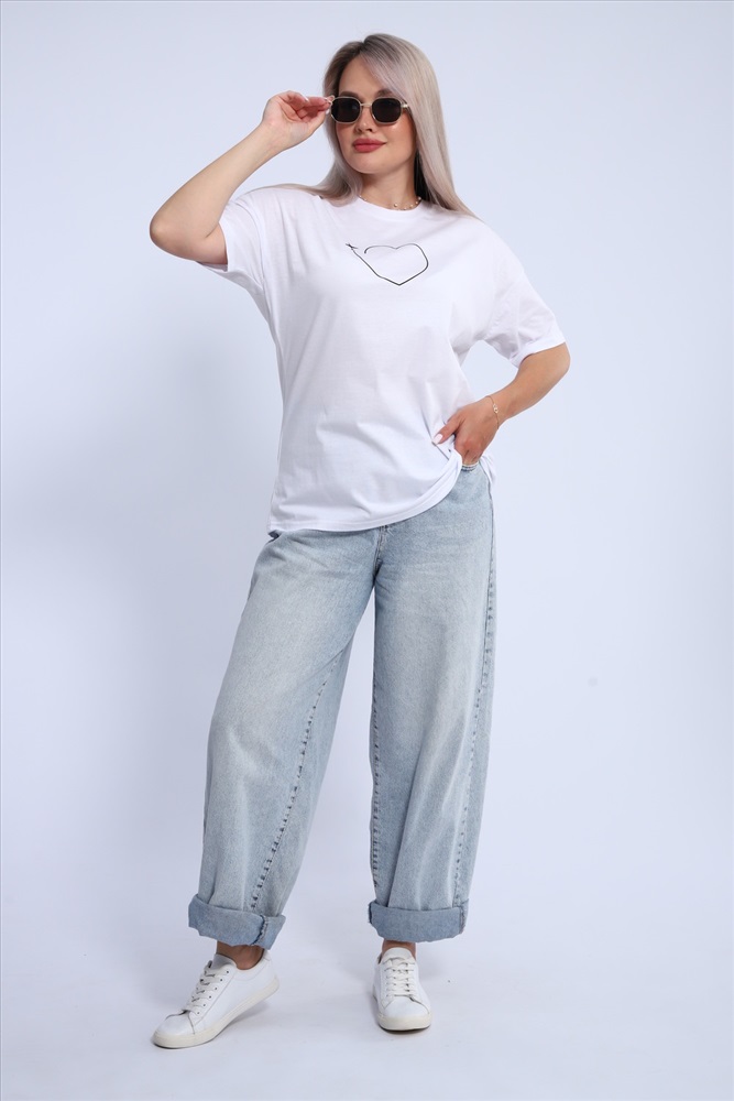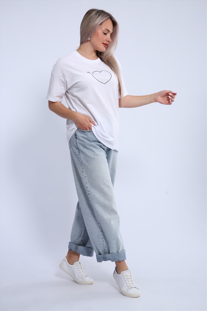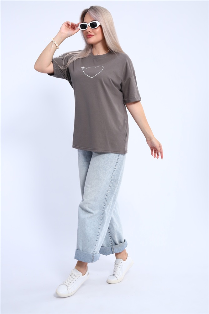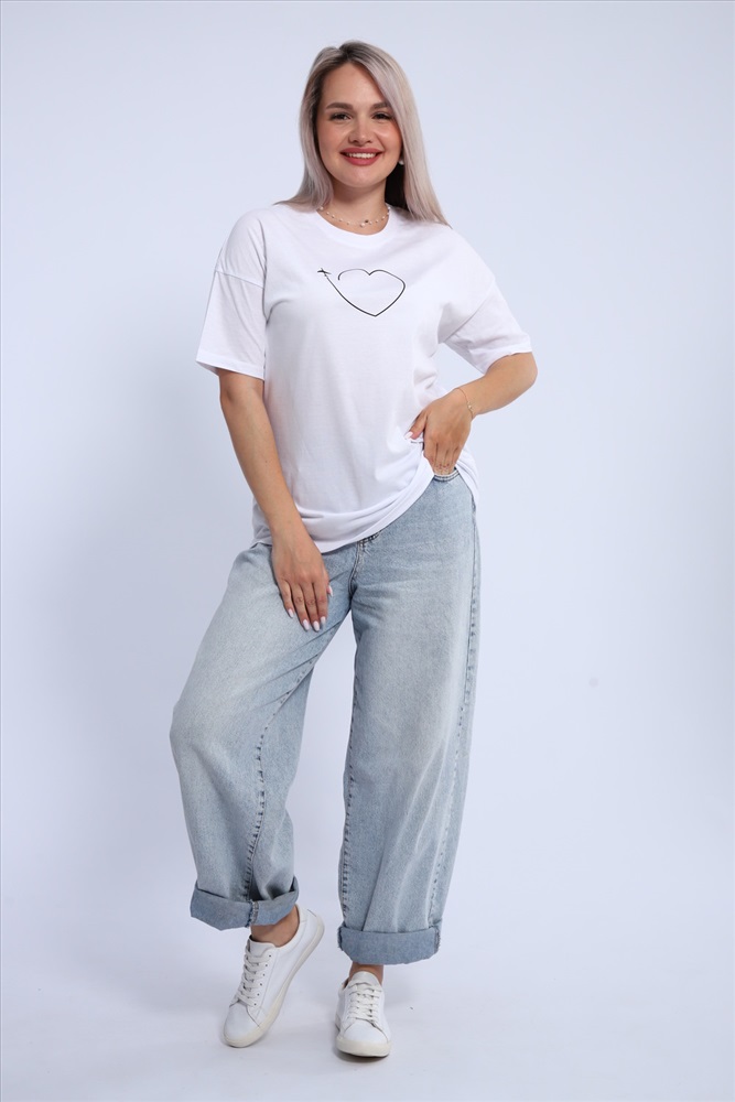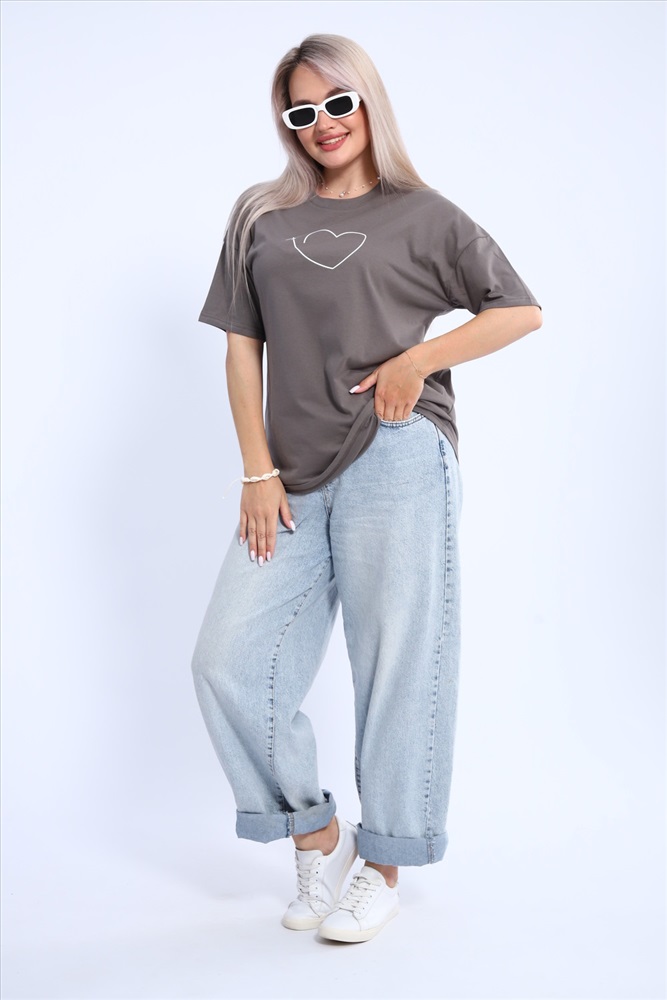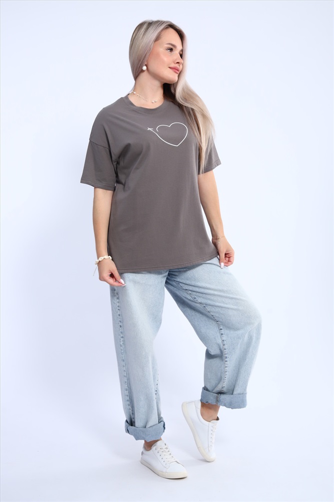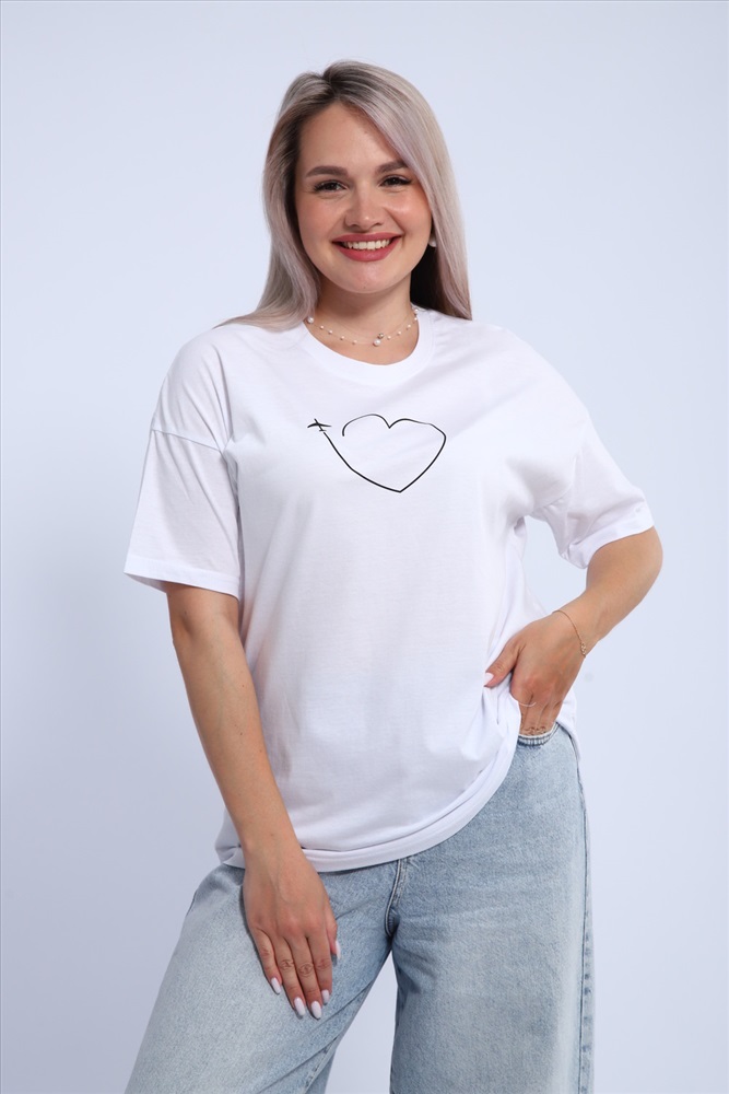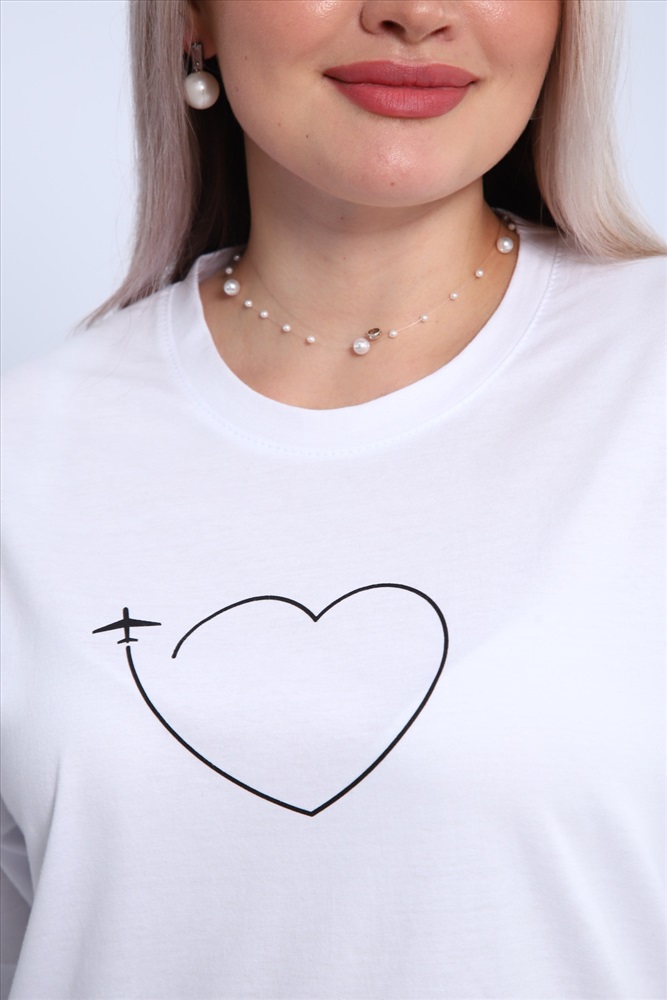 Стиль: повседневный Футболка для женщин прямого силуэта, длиной до середины бедер. Рукав втачной, короткий. Горловина округлой формы. Полочка футболки украшена принтом.
