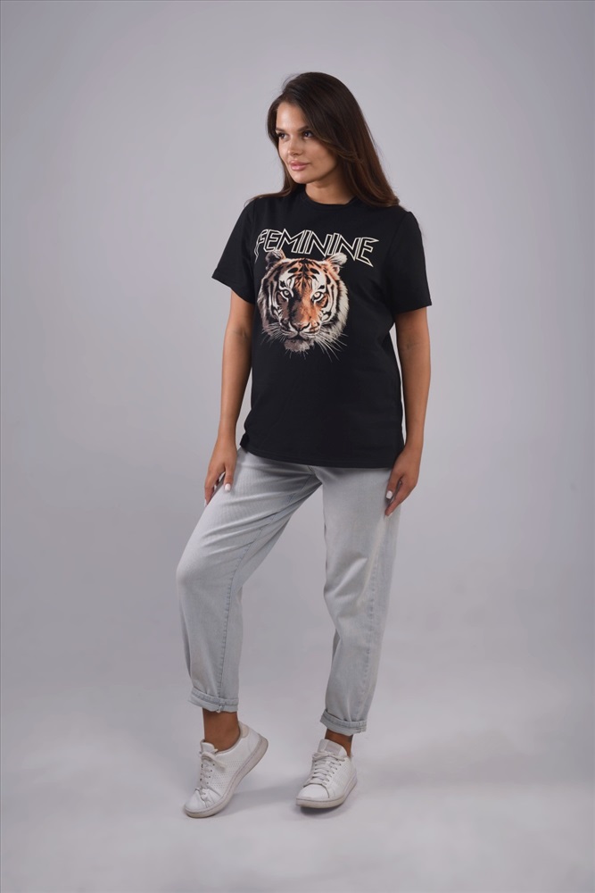 Состав: 95% хлопок, 5% эластан Модель: Футболка женская Rome арт. 4173802 Тип товара: футболка Материал: коттон | хлопок стрейч | хлопок стрейч | коттон Бренд: IMPRELLY Lingrie Отделка: с печатью Рисунок: хищники | надпись Рукав: короткий рукав Силуэт: свободный Стиль: повседневный Футболка женская, повседневная, нарядная, спортивная, большие размеры, свободный крой, удлиненная, круглая горловина, черного цвета из трикотажного хлопок с эластаном, 170 г/м2 с прикольным принтом. Принт дисчардж (краска не наносится на ткань, а удаляется с неё со специально подготовленного пигментного слоя, становясь частью структуры волокон). Принт в стиле гранж, модный, яркий, идеальный выбор для повседневных образов, который подчеркнет вашу индивидуальность и женственность. Модель - размер одежды M (46) 170-92-98, футболка на модели в размере L Таблица размеров и веса