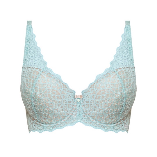 Бюстгальтер Gaja push up на косточках, с дополнительными боковыми поддержками, чашки шитые, на тонком поролоне телесного цвета, со съёмными пуш-ап вкладышами, внутренняя сторона проложена хлопковым трикотажем, внешняя чашек и спинка из кружева цвета бирюзы. Бретельки пришиты, регулируются по длине. На спине застёжка на удлинитель, количество крючков в ряду застёжки, увеличивается пропорционально размеру бюстгальтера. Бюстгальтер идеально сочетается с трусиками Gaja.