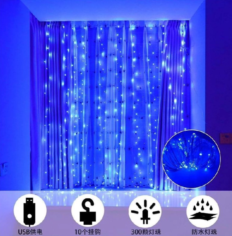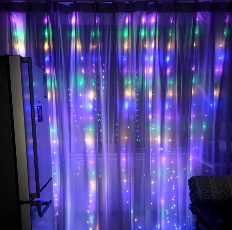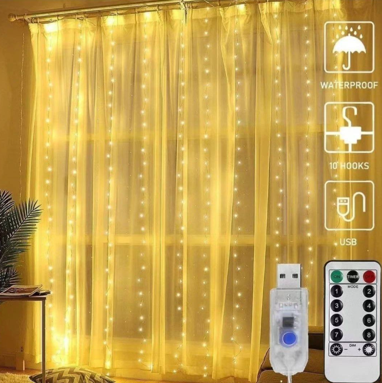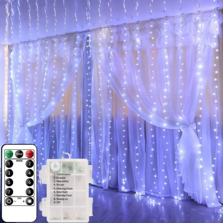 Гирлянда - штора. В наборе крючок и пульт дистанционного управления)