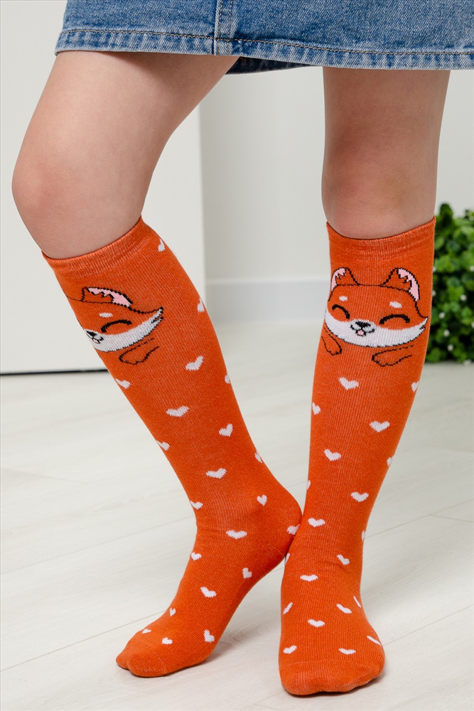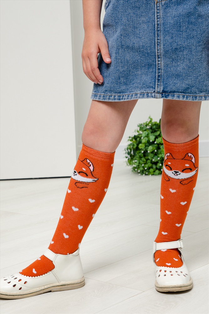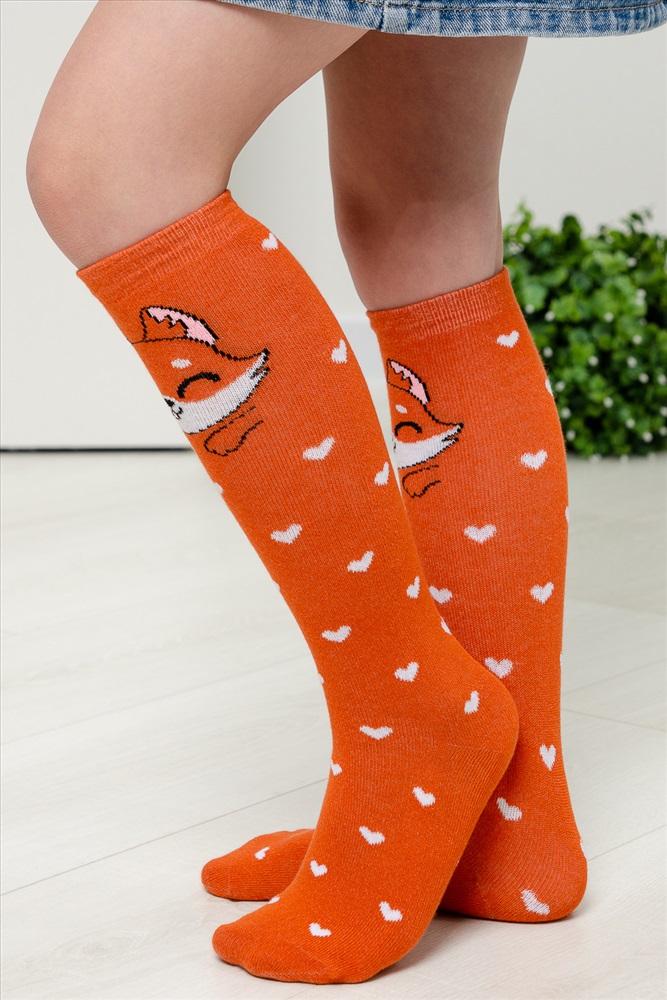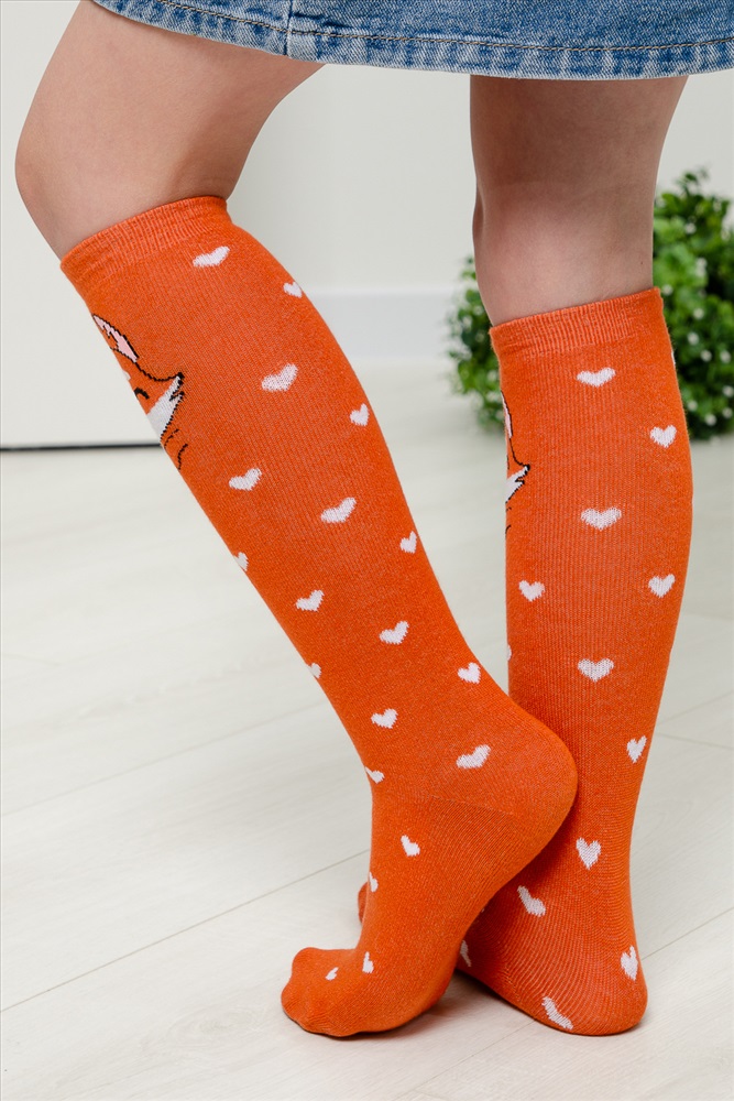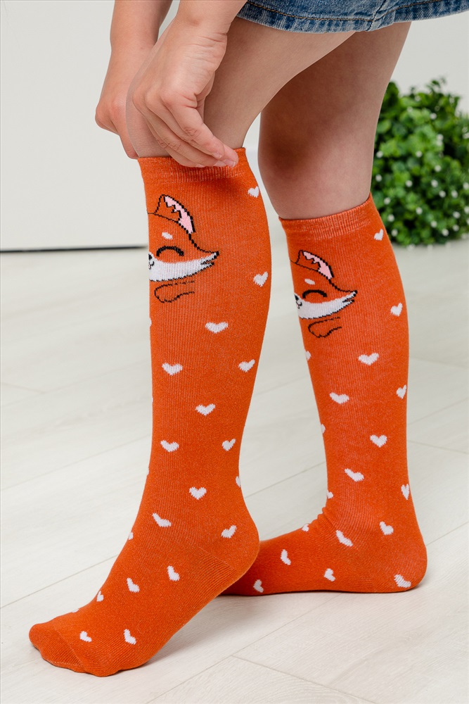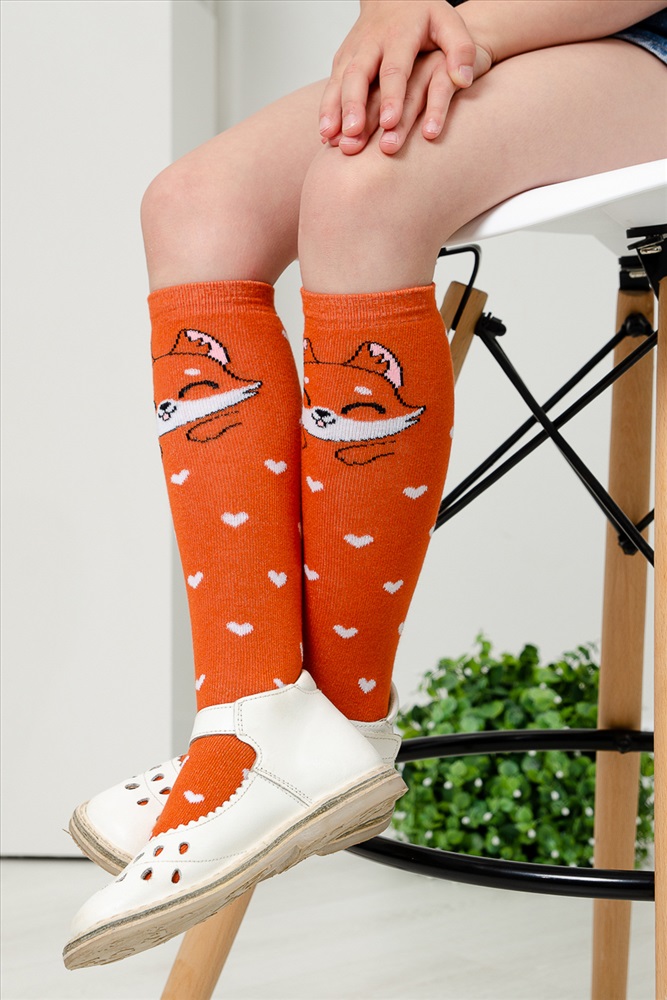 Стиль: повседневный Забавные детские гольфы с узором из сердечек. На верхней части изображение лисенка. В комплекте 2 пары