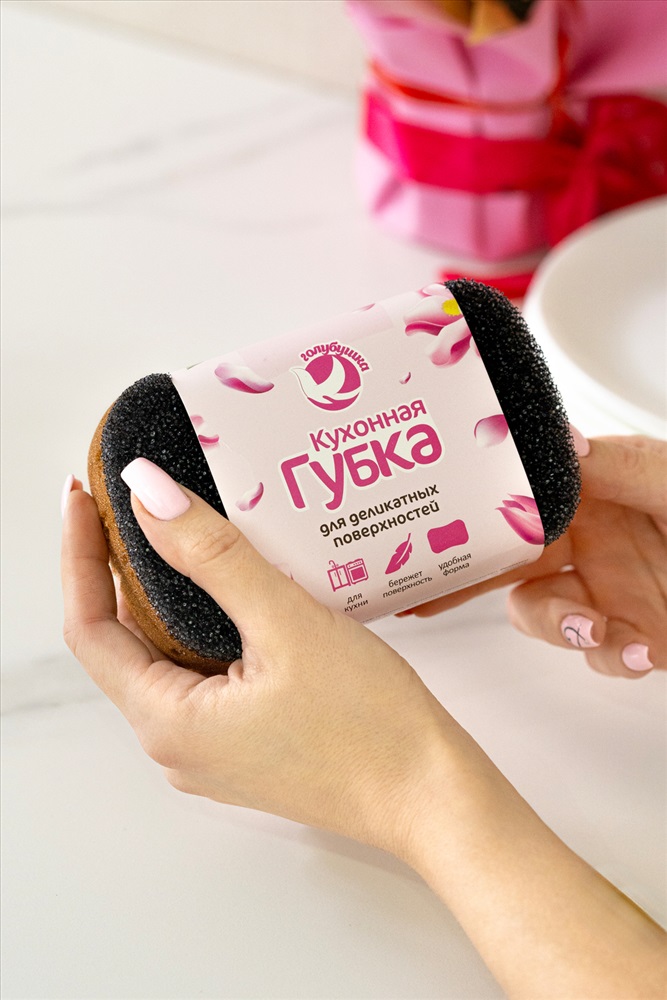 Модель: Губка кухонная для деликатных поверхностей 14х9,5х4см, 1шт Голубушка арт. 9004-021