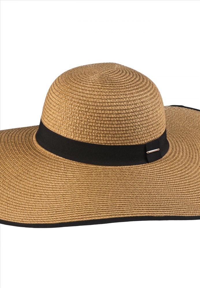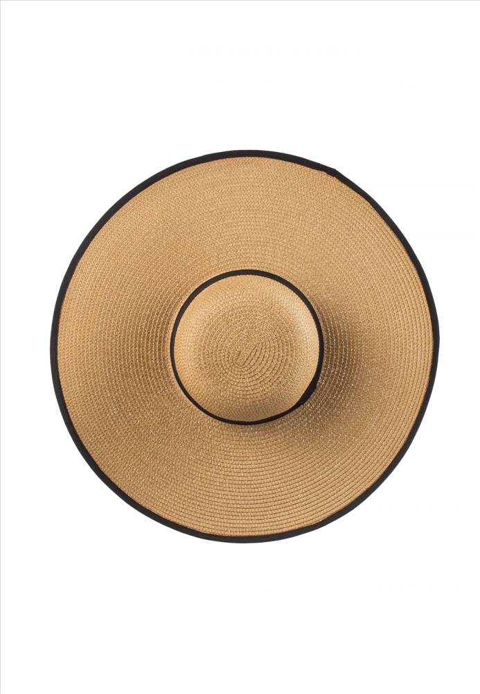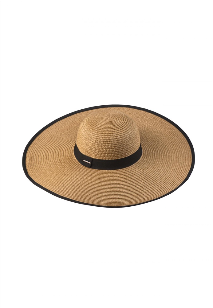 Элегантная шляпа в натуральном оттенке с контрастной отделкой. Изделие отлично защищает лицо от солнечных лучей благодаря широким полям и почти не ощущается на голове. Классическая модель из натурального материала. Тулья украшена лентой с фирменным лого.
