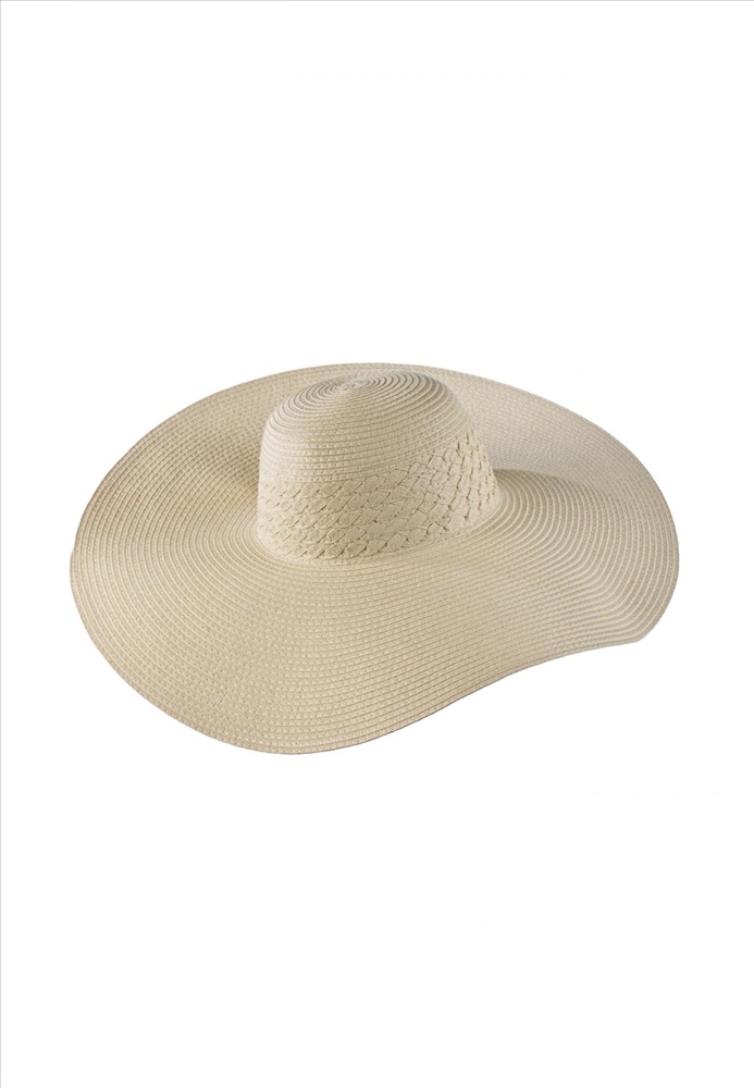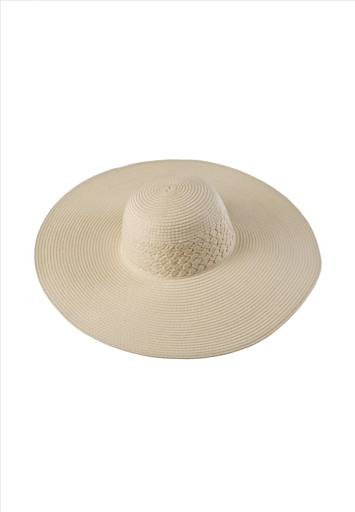 Однотонная шляпа отлично защищает от солнечных лучей благодаря широким полям и светлому цвету. Классическая модель из натурального материала.