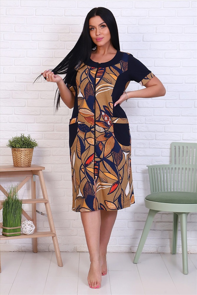Халат женский на молнии. Дома хочется выглядеть стильно и не лишиться комфорта. Тогда обратите внимание на халат с коротким рукавом, изготовленный из натурального хлопка. Стильный халат из мягкого трикотажа может смело использоваться как банный, пляжный и хозяйственный. Женский халат на молнии с боковыми накладными карманами. Рукав короткий. Состав: 100% хлопок. Крой халата поможет не только скрыть недостатки фигуры, но и подчеркнуть все достоинства.