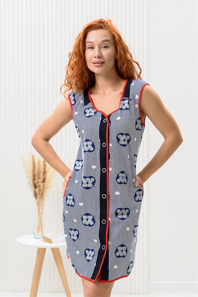 Состав: 100% хлопок Модель: Халат 1183 Тип товара: халат Материал: кулирка | кулирка Бренд: Натали Суслова Длина: короткий Карман: боковые Назначение: для дома НДС: 22% Отделка: с карманами Рейтинг: Рейтинг 4 и выше Рисунок: фуд-принт | зверюшки Рукав: без рукава Сезонность: лето | осень | весна | зима Силуэт: прилегающий | приталенный Стиль: домашний Воротник: без воротника Застежка: пуговицы Халат без рукавов, на пуговицах. По бокам расположены карманы. Прекрасно подойдет на каждый день Таблица размеров и веса